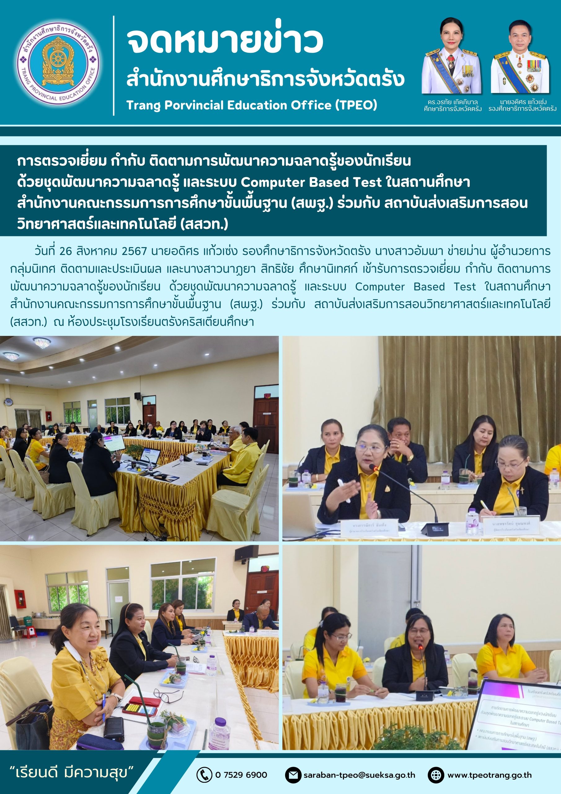 การตรวจเยี่ยม กำกับ ติดตามการพัฒนาความฉลาดรู้ของนักเรียน ด้วยชุดพัฒนาความฉลาดรู้ และระบบ Computer Based Test ในสถานศึกษา สำนักงานคณะกรรมการการศึกษาขั้นพื้นฐาน (สพฐ.) ร่วมกับ สถาบันส่งเสริมการสอนวิทยาศาสตร์และเทคโนโลยี (สสวท.)