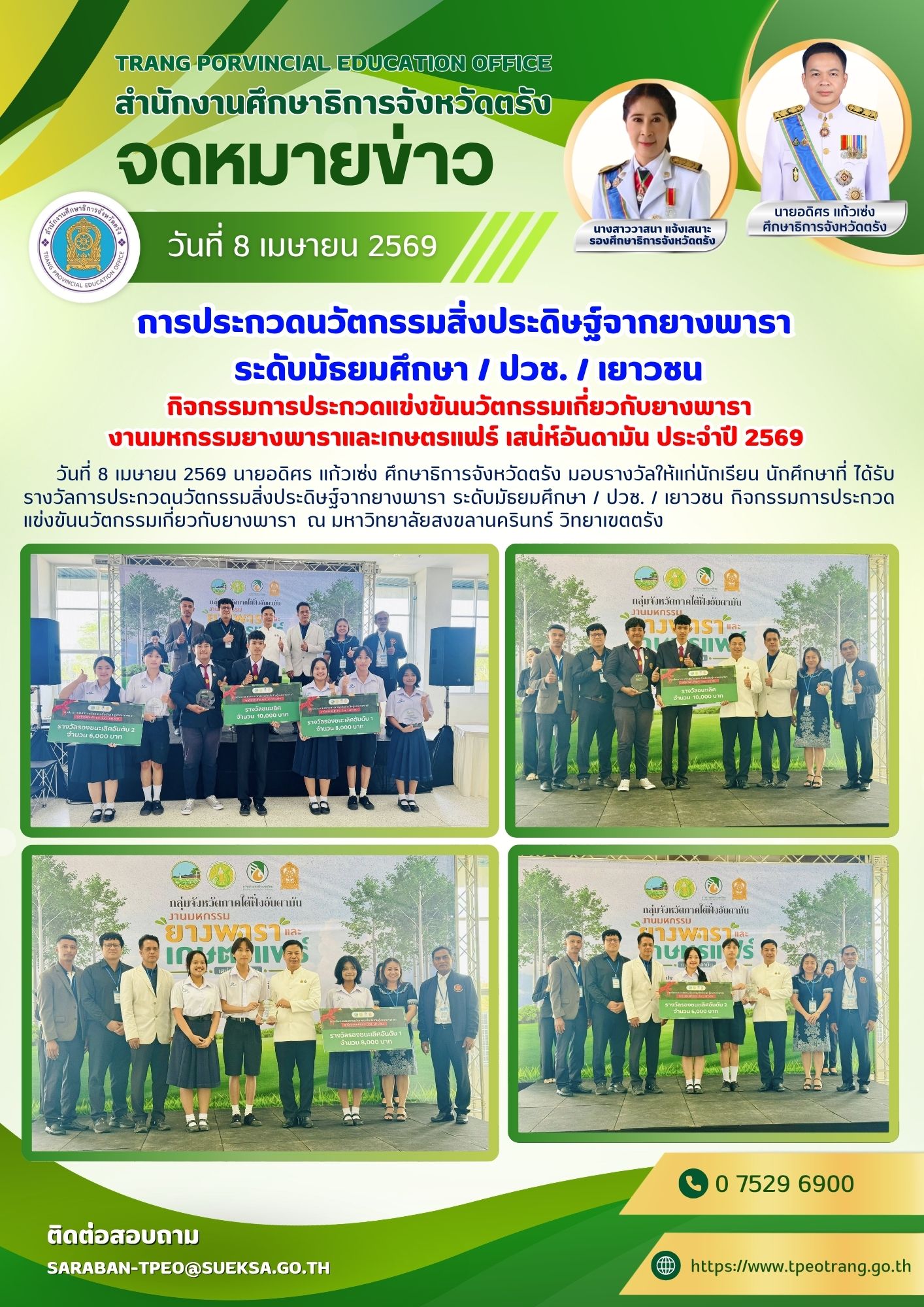 การประกวดนวัตกรรมสิ่งประดิษฐ์จากยางพาราระดับมัธยมศึกษา / ปวช. / เยาวชน