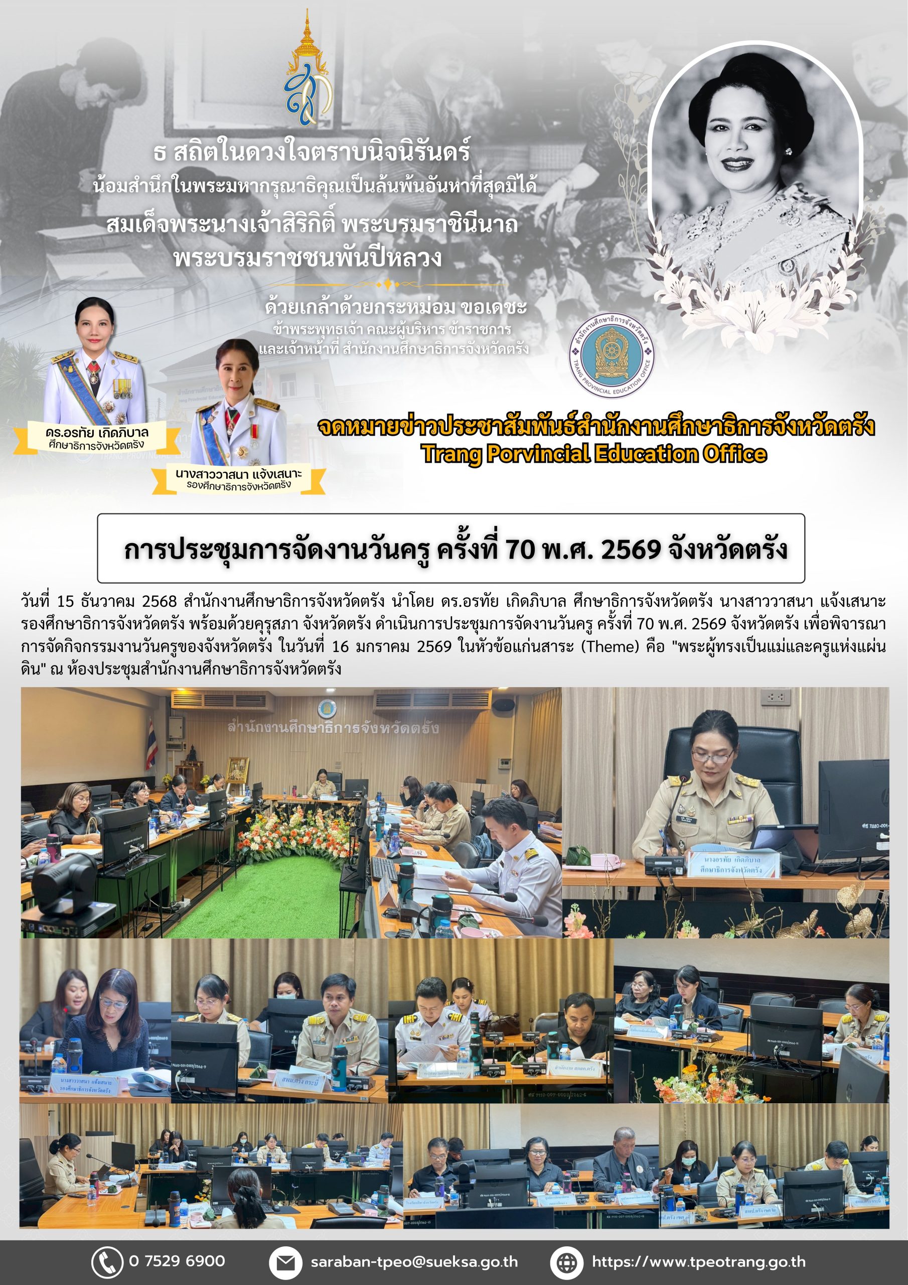 การประชุมการจัดงานวันครู ครั้งที่ 70 พ.ศ. 2569 จังหวัดตรัง