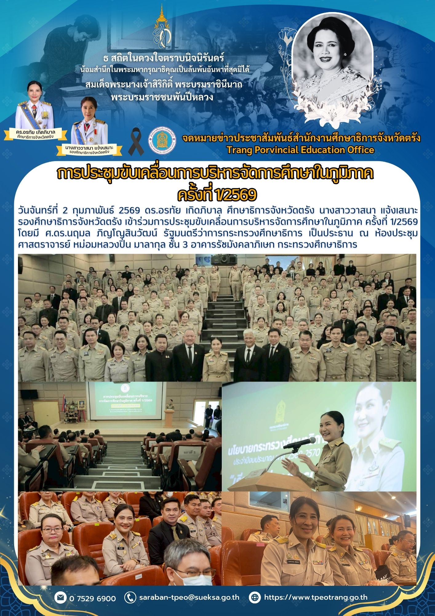 การประชุมขับเคลื่อนการบริหารจัดการศึกษาในภูมิภาคครั้งที่ 1/2569