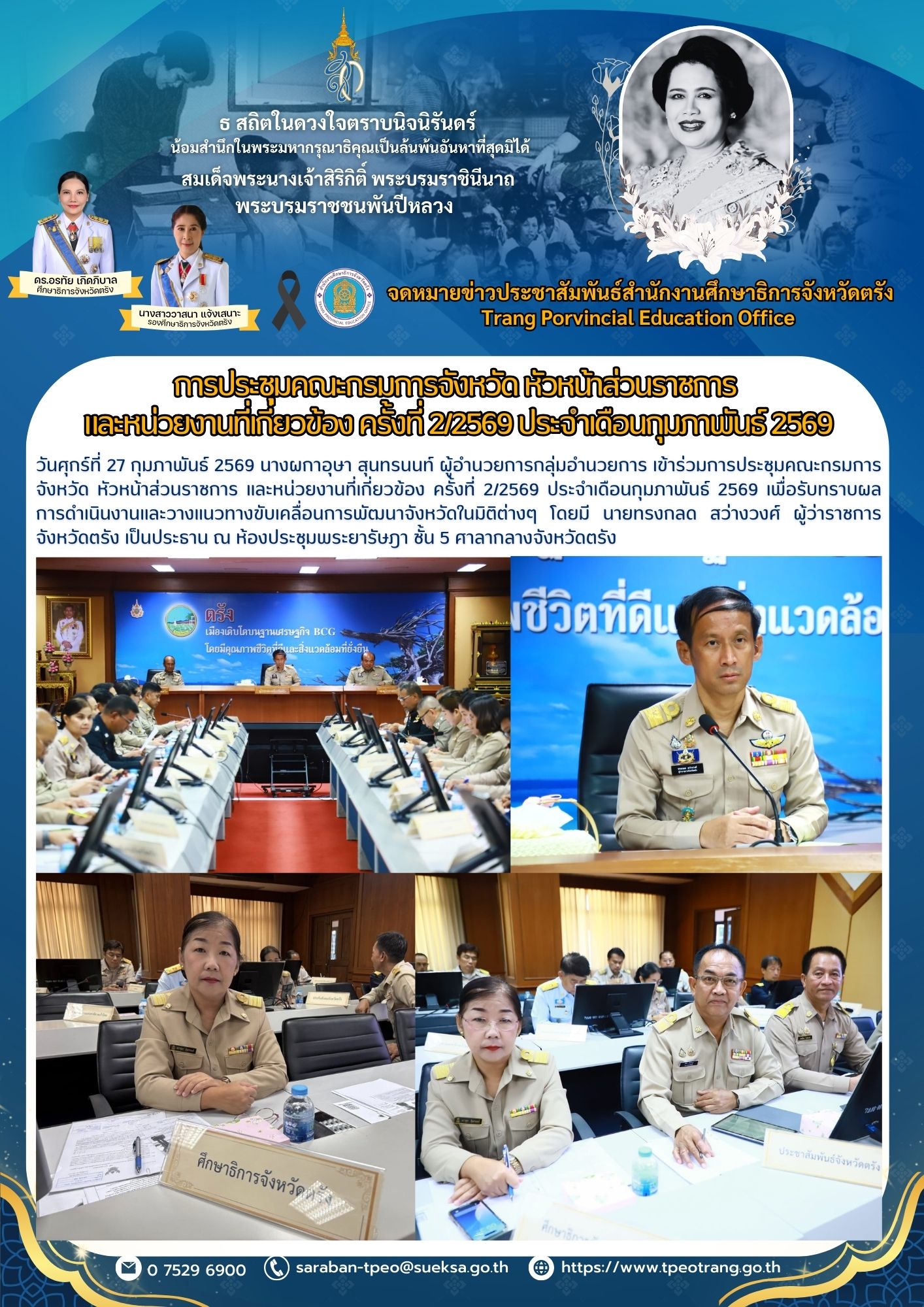 การประชุมคณะกรมการจังหวัด หัวหน้าส่วนราชการและหน่วยงานที่เกี่ยวข้อง ครั้งที่ 2/2569 ประจำเดือนกุมภาพันธ์ 2569