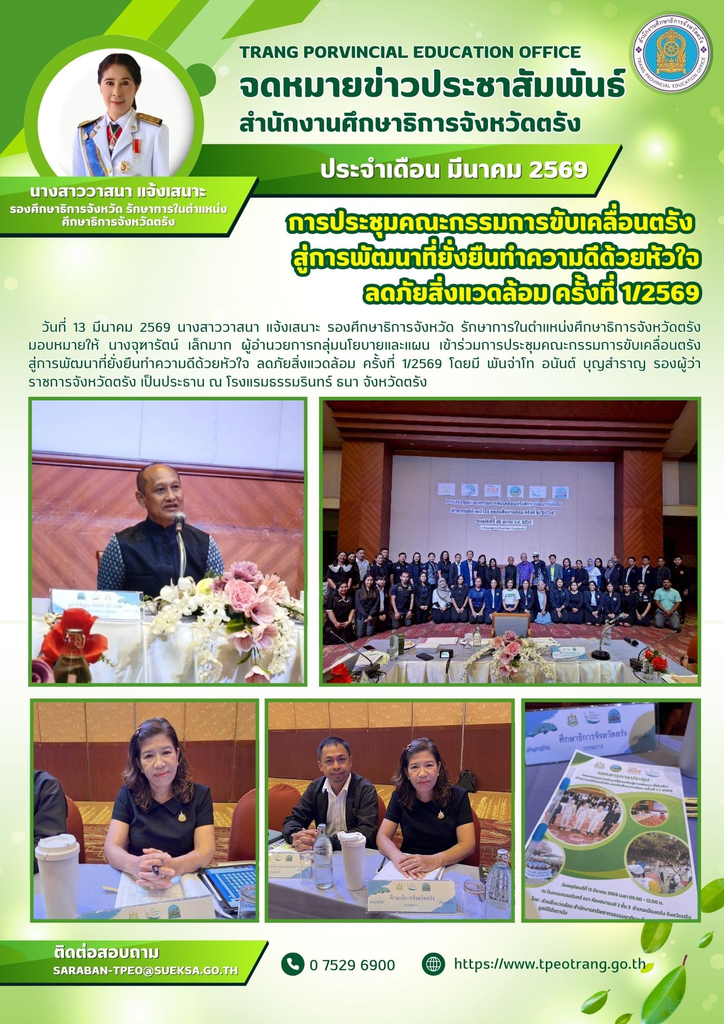 การประชุมคณะกรรมการขับเคลื่อนตรังสู่การพัฒนาที่ยั่งยืนทำความดีด้วยหัวใจลดภัยสิ่งแวดล้อม ครั้งที่ 1/2569