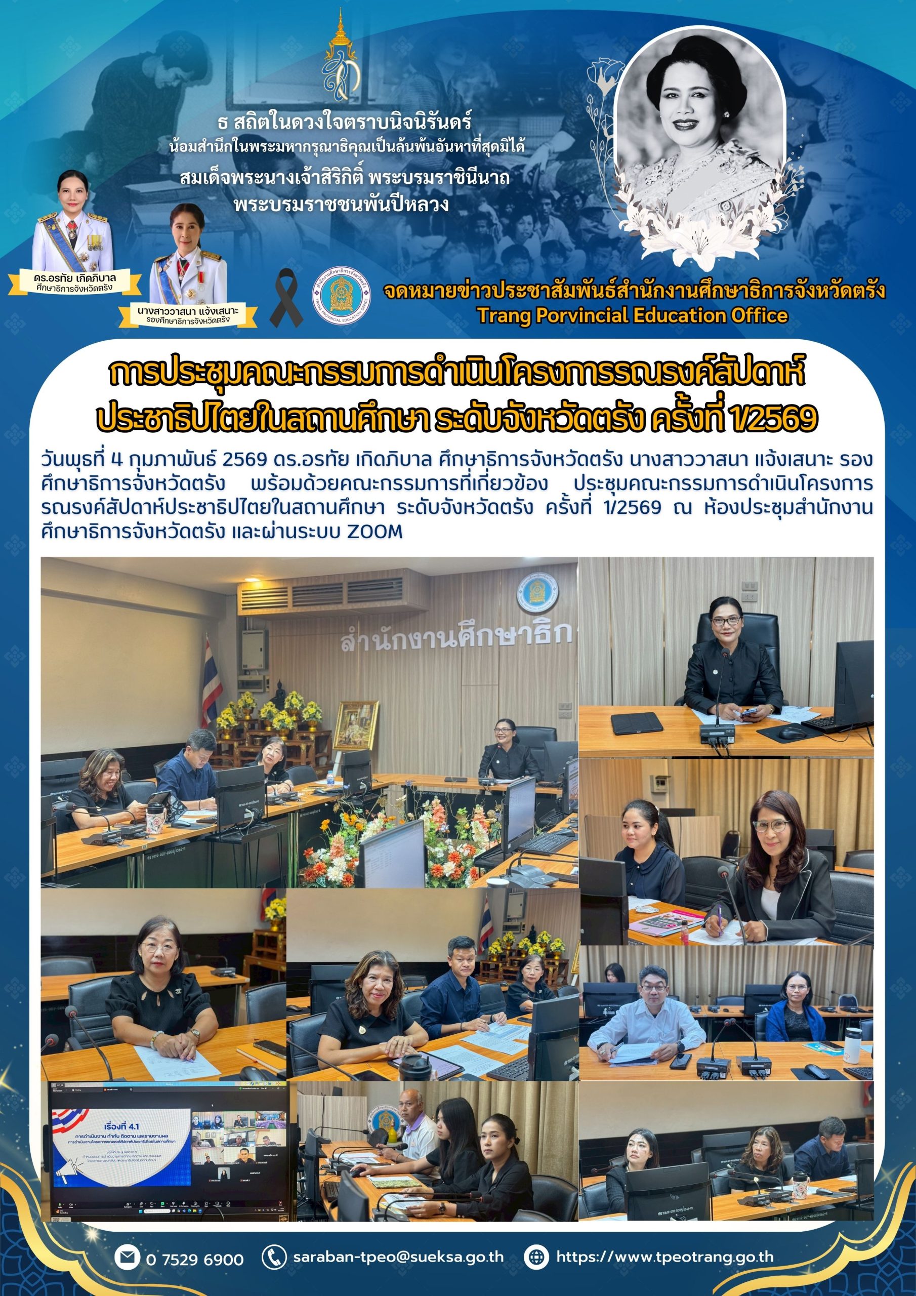 การประชุมคณะกรรมการดำเนินโครงการรณรงค์สัปดาห์ประชาธิปไตยในสถานศึกษา ระดับจังหวัดตรัง ครั้งที่ 1/2569