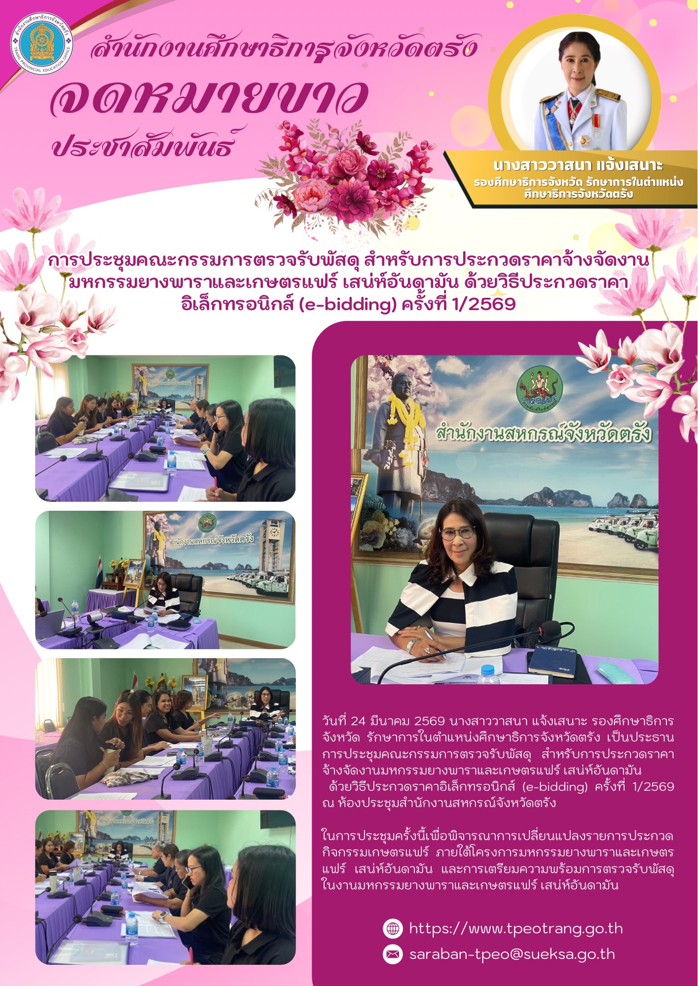 การประชุมคณะกรรมการตรวจรับพัสดุ สำหรับการประกวดราคาจ้างจัดงานมหกรรมยางพาราและเกษตรแฟร์ เสน่ห์อันดามัน ด้วยวิธีประกวดราคาอิเล็กทรอนิกส์ (e-bidding) ครั้งที่ 1/2569