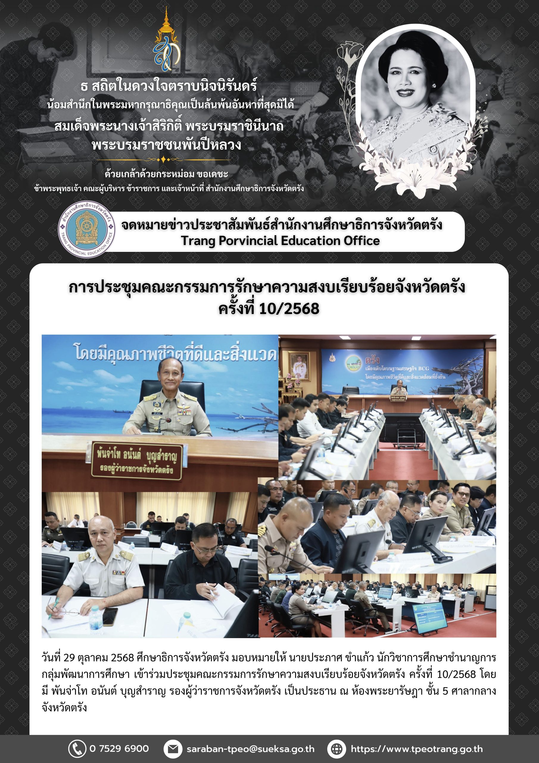 การประชุมคณะกรรมการรักษาความสงบเรียบร้อยจังหวัดตรัง ครั้งที่ 10/2568