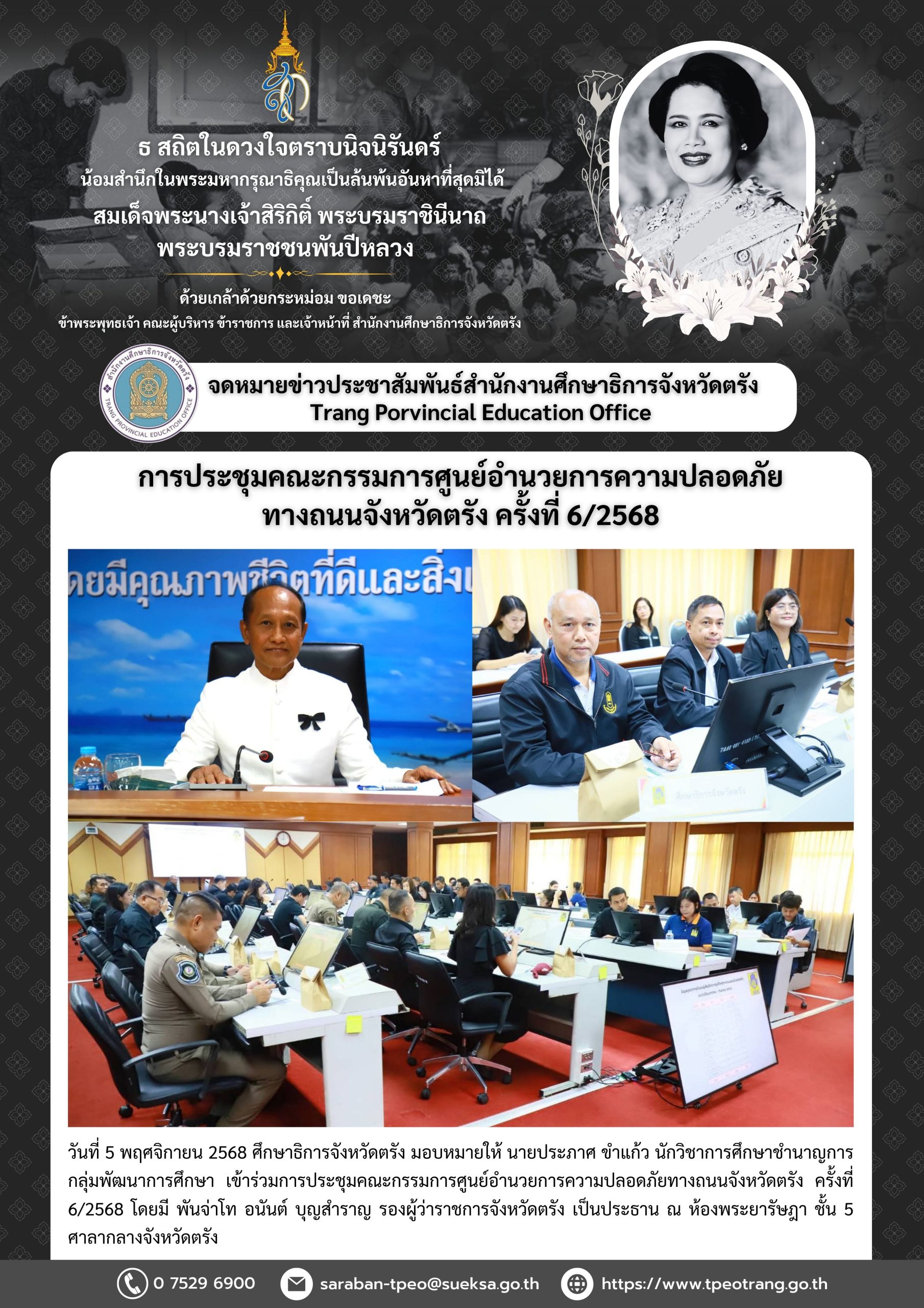 การประชุมคณะกรรมการศูนย์อำนวยการความปลอดภัยทางถนนจังหวัดตรัง ครั้งที่ 6/2568