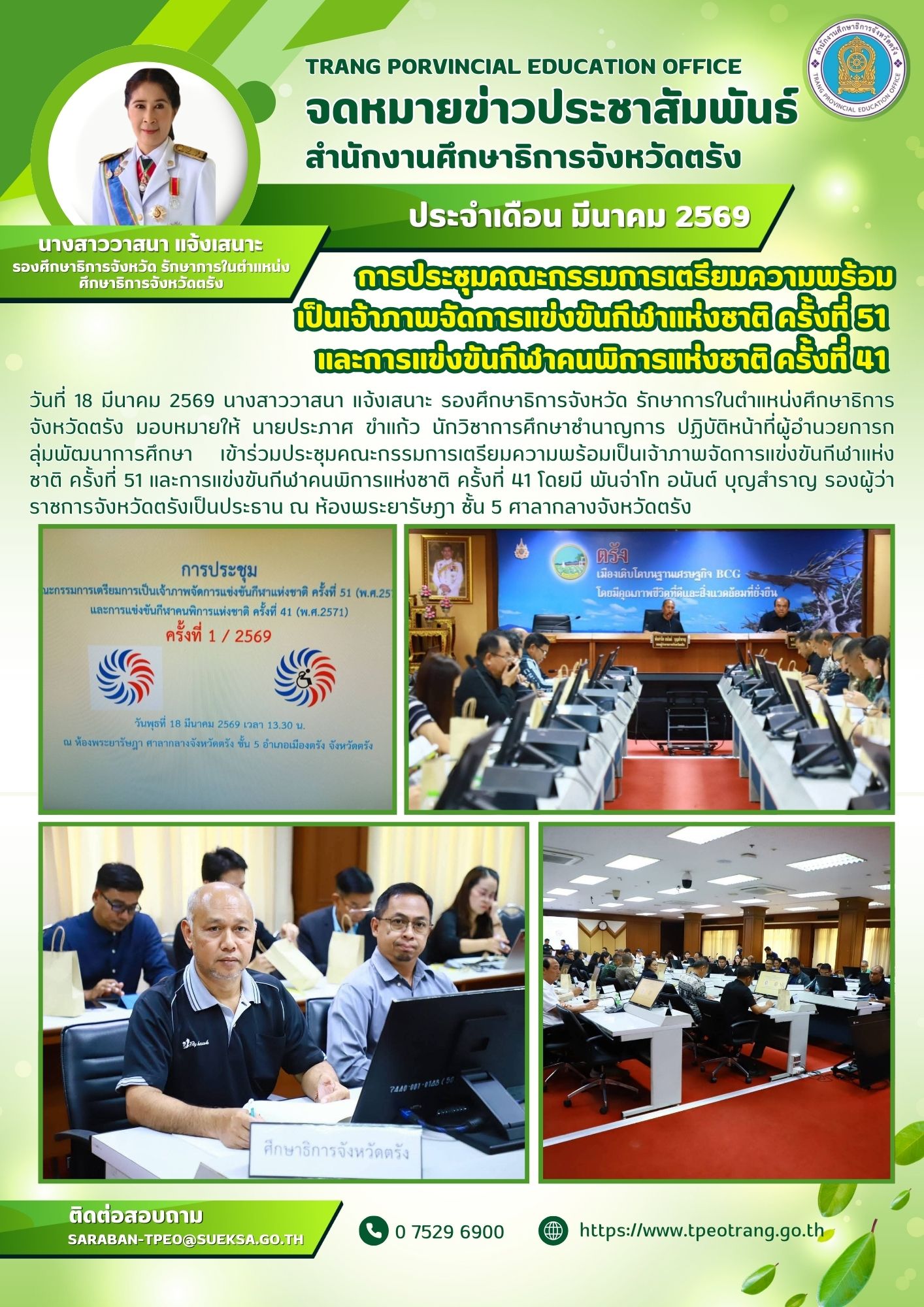 การประชุมคณะกรรมการเตรียมความพร้อมเป็นเจ้าภาพจัดการแข่งขันกีฬาแห่งชาติ ครั้งที่ 51และการแข่งขันกีฬาคนพิการแห่งชาติ ครั้งที่ 41