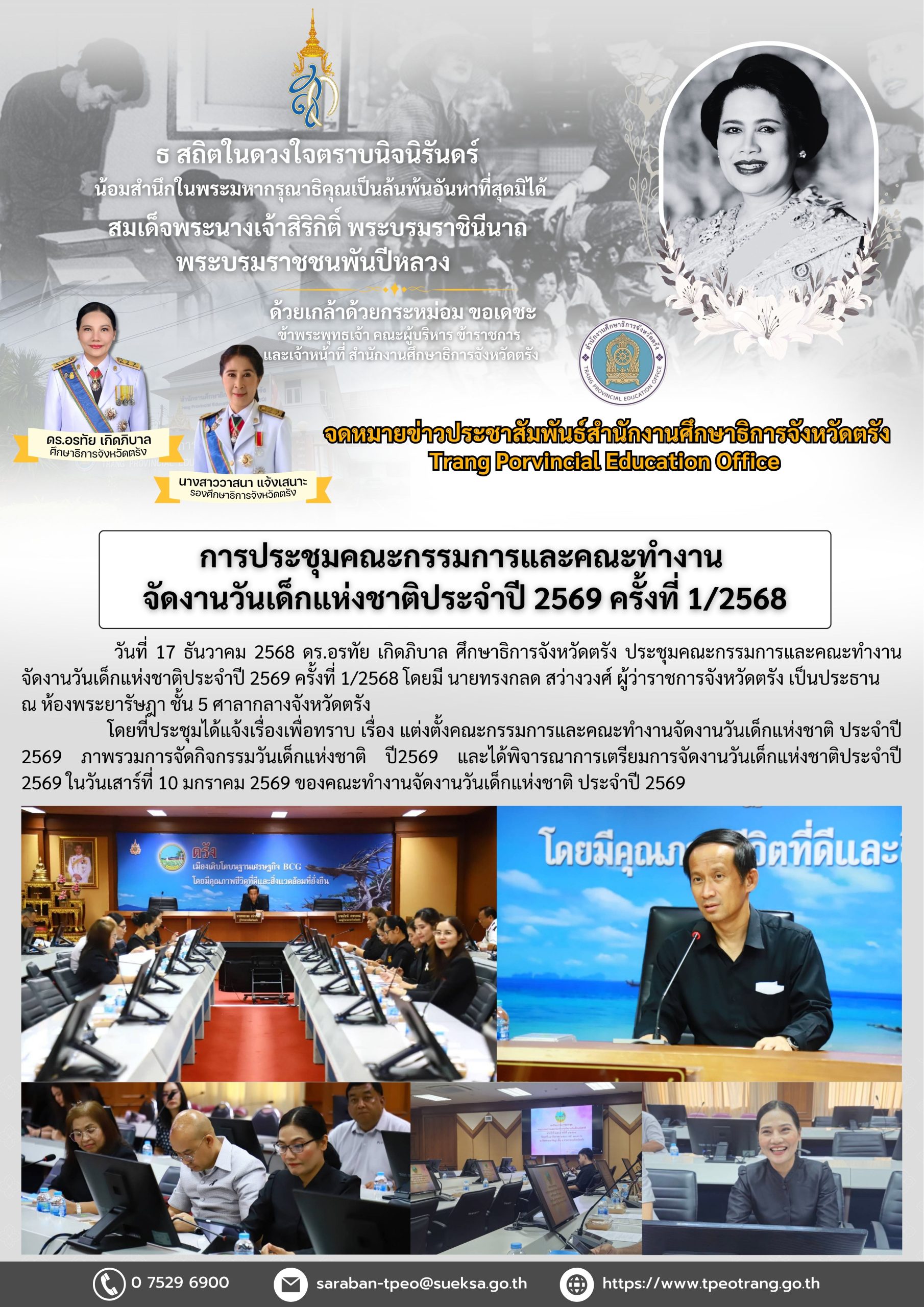 การประชุมคณะกรรมการและคณะทำงานจัดงานวันเด็กแห่งชาติประจำปี 2569 ครั้งที่ 1/2568