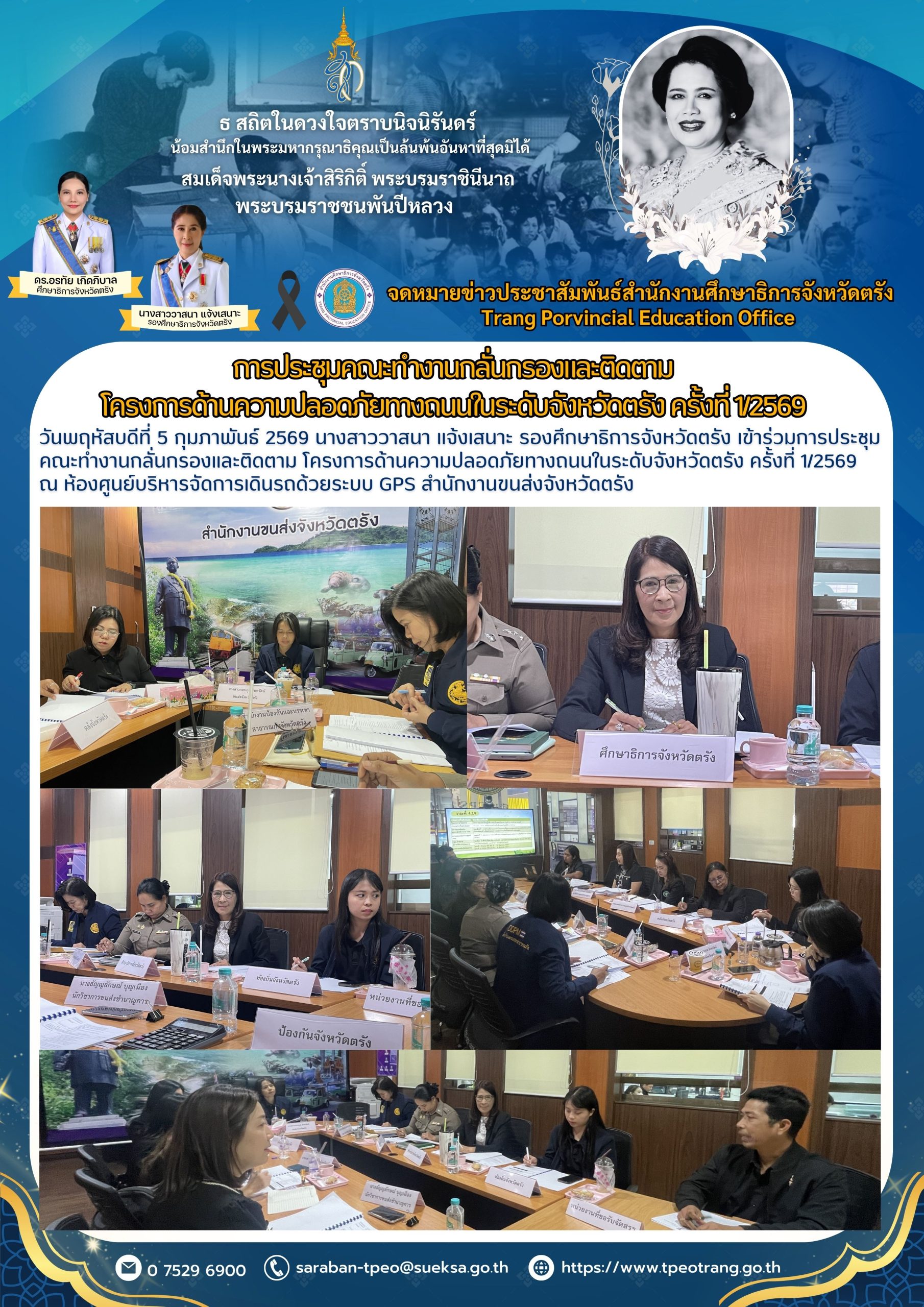 การประชุมคณะทำงานกลั่นกรองและติดตามโครงการด้านความปลอดภัยทางถนนในระดับจังหวัดตรัง ครั้งที่ 1/2569