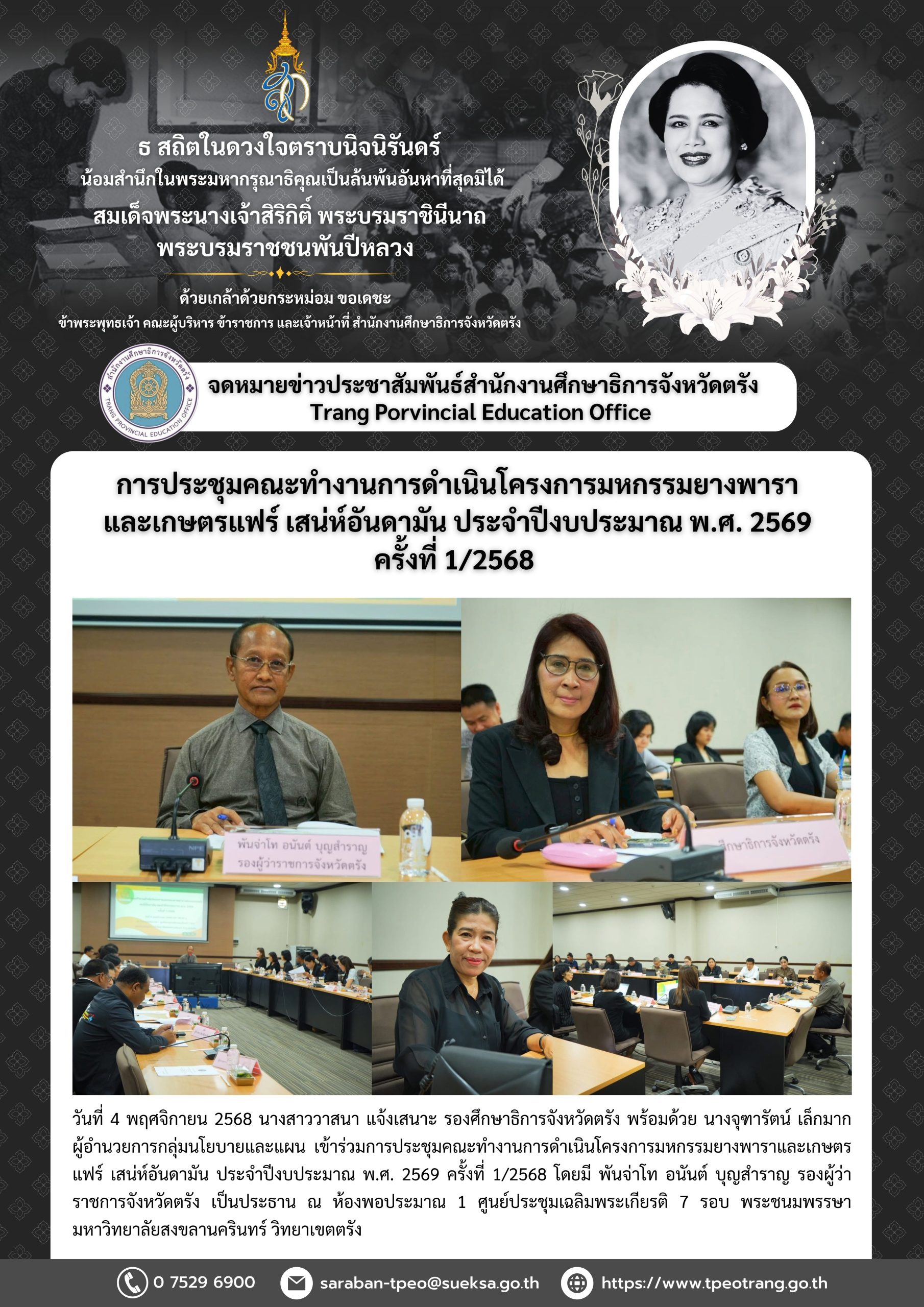 การประชุมคณะทำงานการดำเนินโครงการมหกรรมยางพาราและเกษตรแฟร์ เสน่ห์อันดามัน ประจำปีงบประมาณ พ.ศ. 2569 ครั้งที่ 1/2568