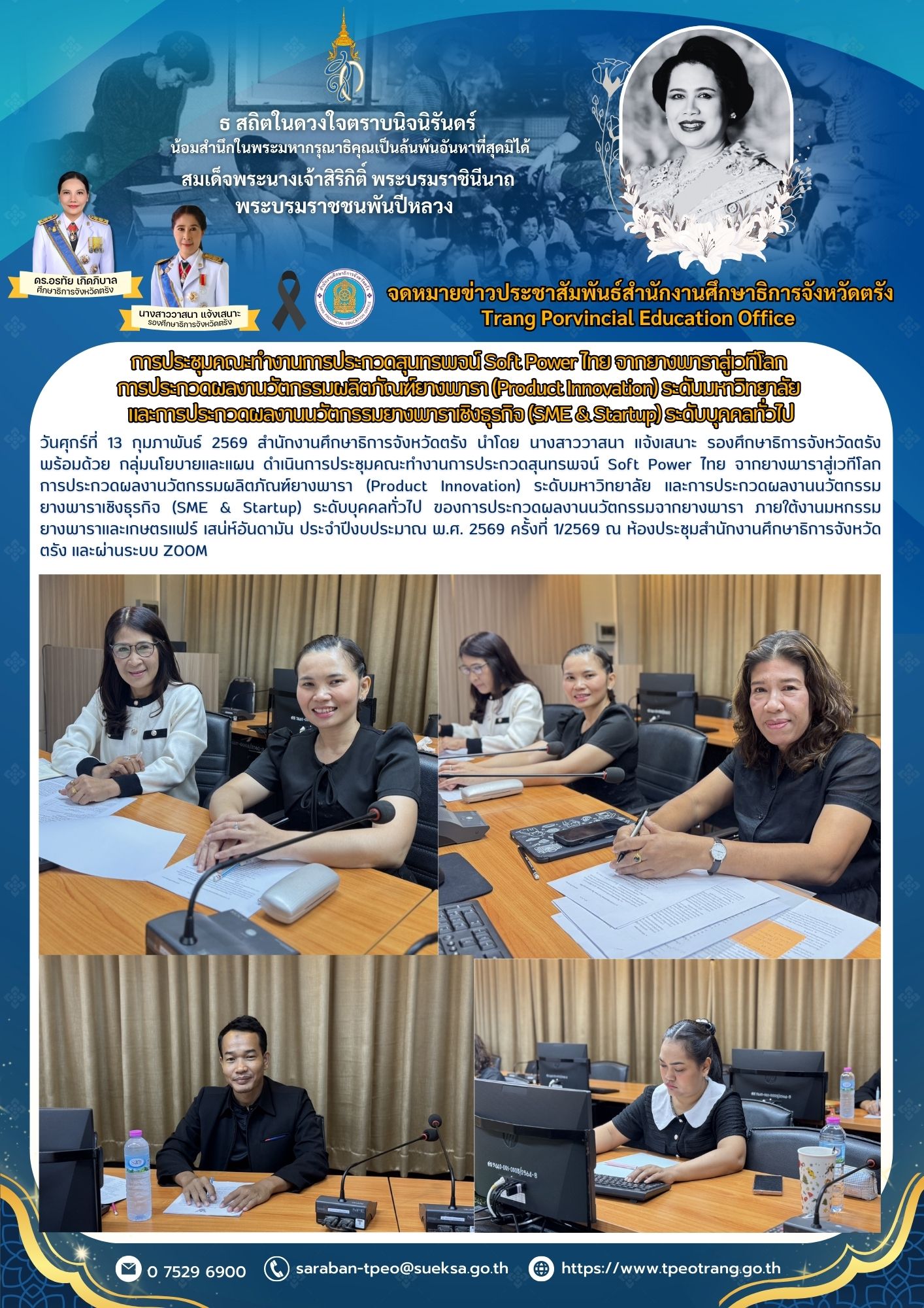 การประชุมคณะทำงานการประกวดสุนทรพจน์ Soft Power ไทย จากยางพาราสู่เวทีโลกการประกวดผลงานวัตกรรมผลิตภัณฑ์ยางพารา (Product Innovation) ระดับมหาวิทยาลัยและการประกวดผลงานนวัตกรรมยางพาราเชิงธุรกิจ (SME & Startup) ระดับบุคคลทั่วไป