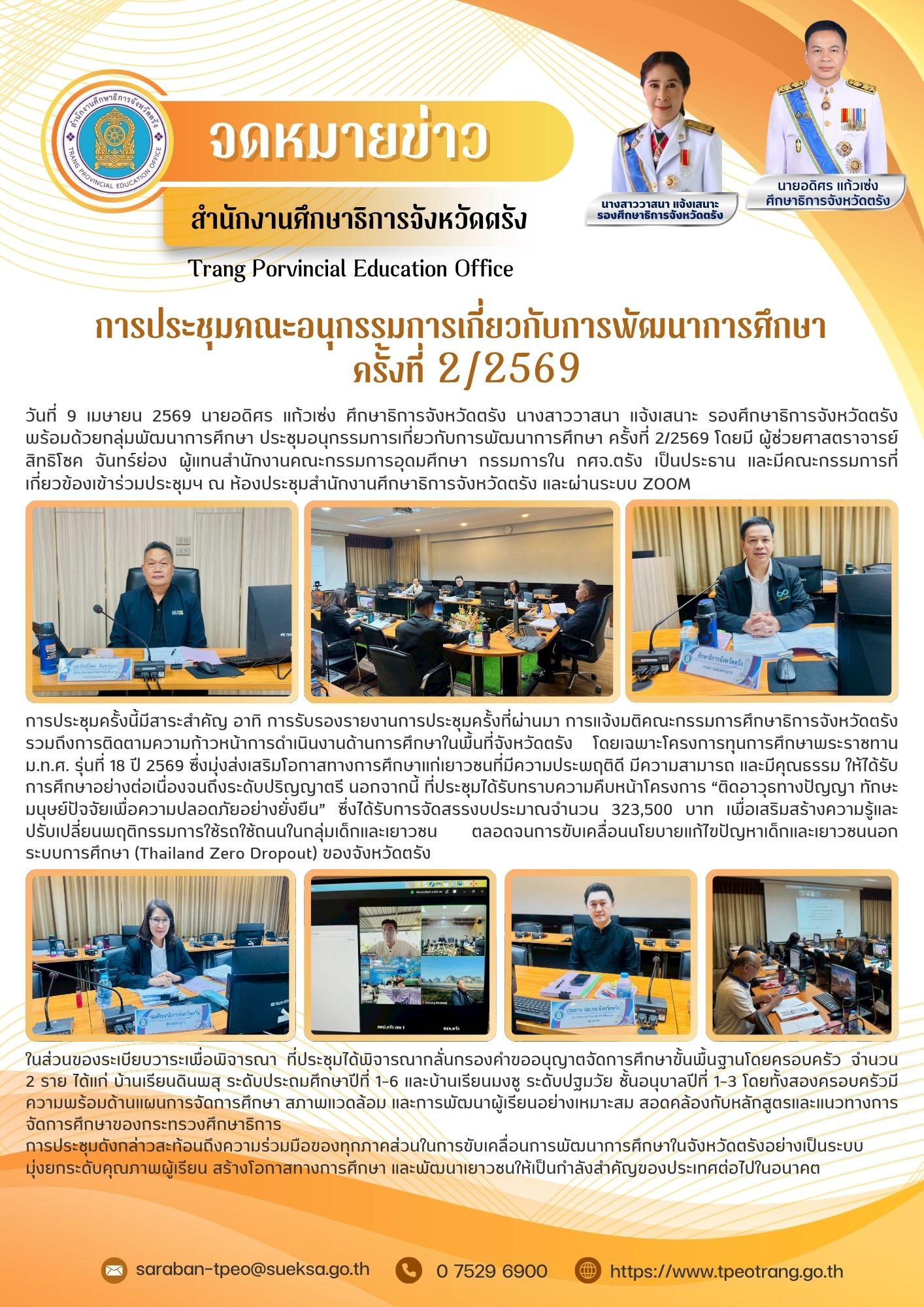 การประชุมคณะอนุกรรมการเกี่ยวกับการพัฒนาการศึกษา ครั้งที่ 2/2569