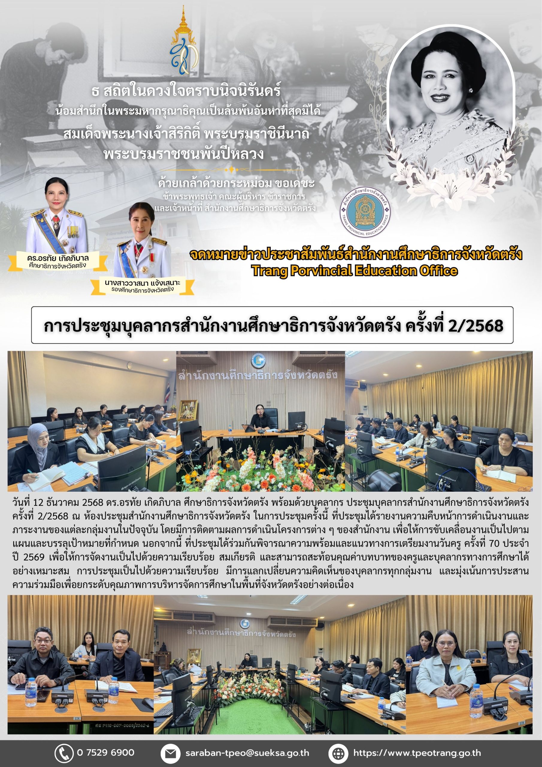 การประชุมบุคลากรสำนักงานศึกษาธิการจังหวัดตรัง ครั้งที่ 2/2568