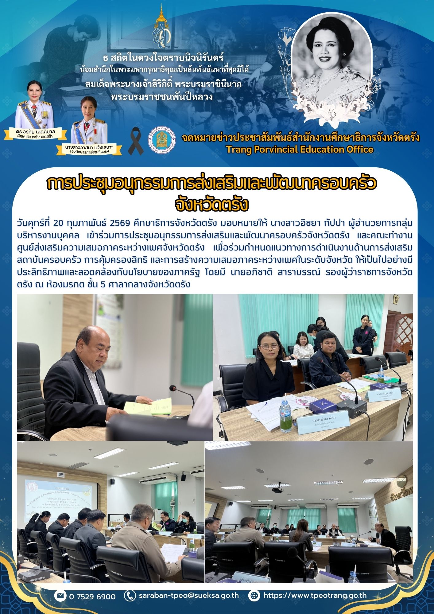 การประชุมอนุกรรมการส่งเสริมและพัฒนาครอบครัวจังหวัดตรัง