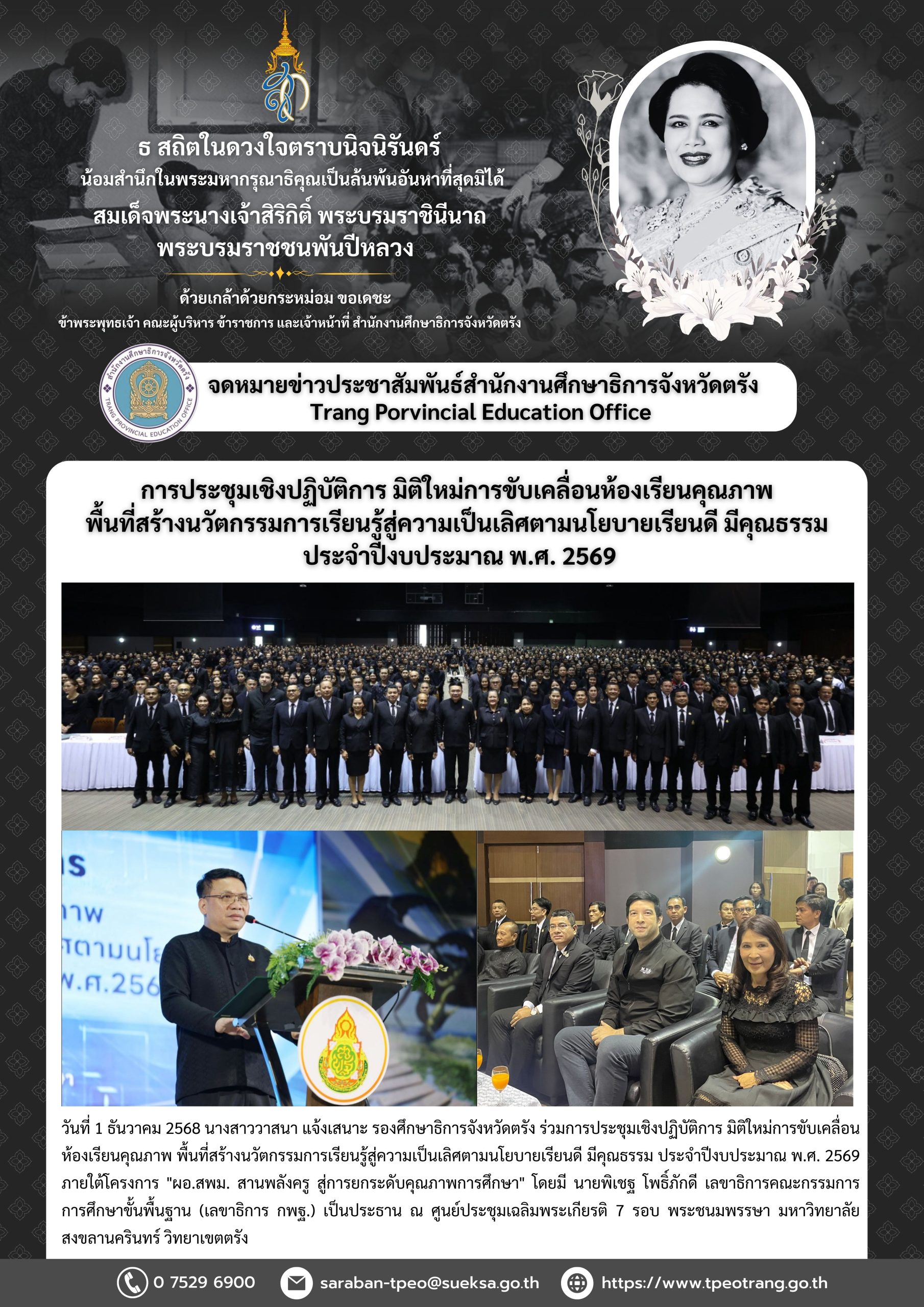 การประชุมเชิงปฏิบัติการ มิติใหม่การขับเคลื่อนห้องเรียนคุณภาพ พื้นที่สร้างนวัตกรรมการเรียนรู้สู่ความเป็นเลิศตามนโยบายเรียนดี มีคุณธรรม ประจำปีงบประมาณ พ.ศ. 2569