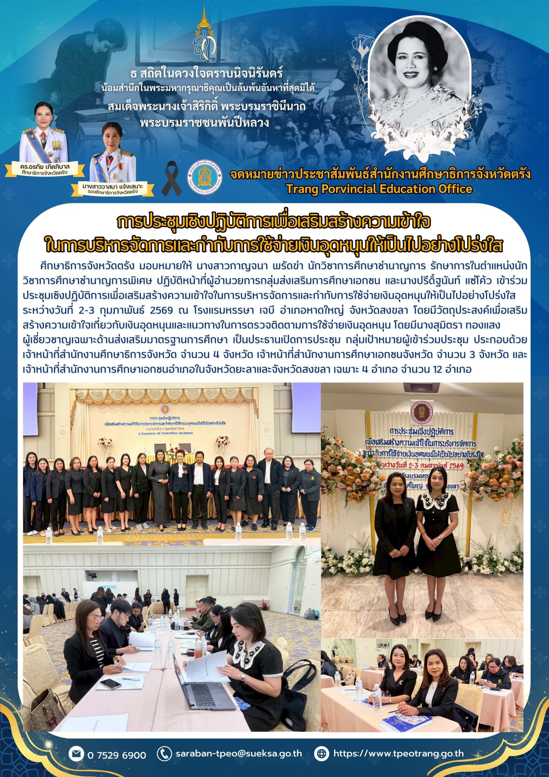 การประชุมเชิงปฏิบัติการเพื่อเสริมสร้างความเข้าใจในการบริหารจัดการและกำกับการใช้จ่ายเงินอุดหนุนให้เป็นไปอย่างโปร่งใส