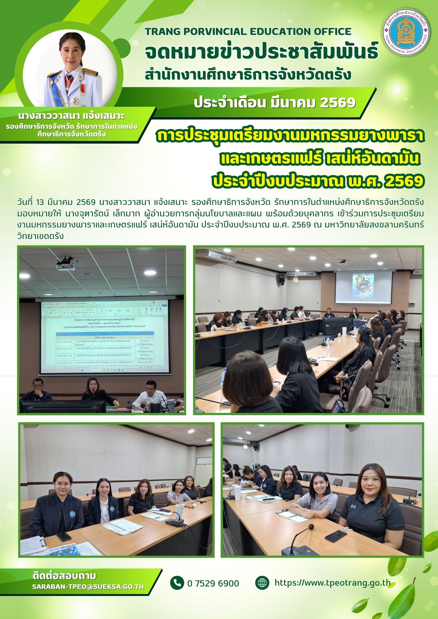การประชุมเตรียมงานมหกรรมยางพาราและเกษตรแฟร์ เสน่ห์อันดามันประจำปีงบประมาณ พ.ศ. 2569