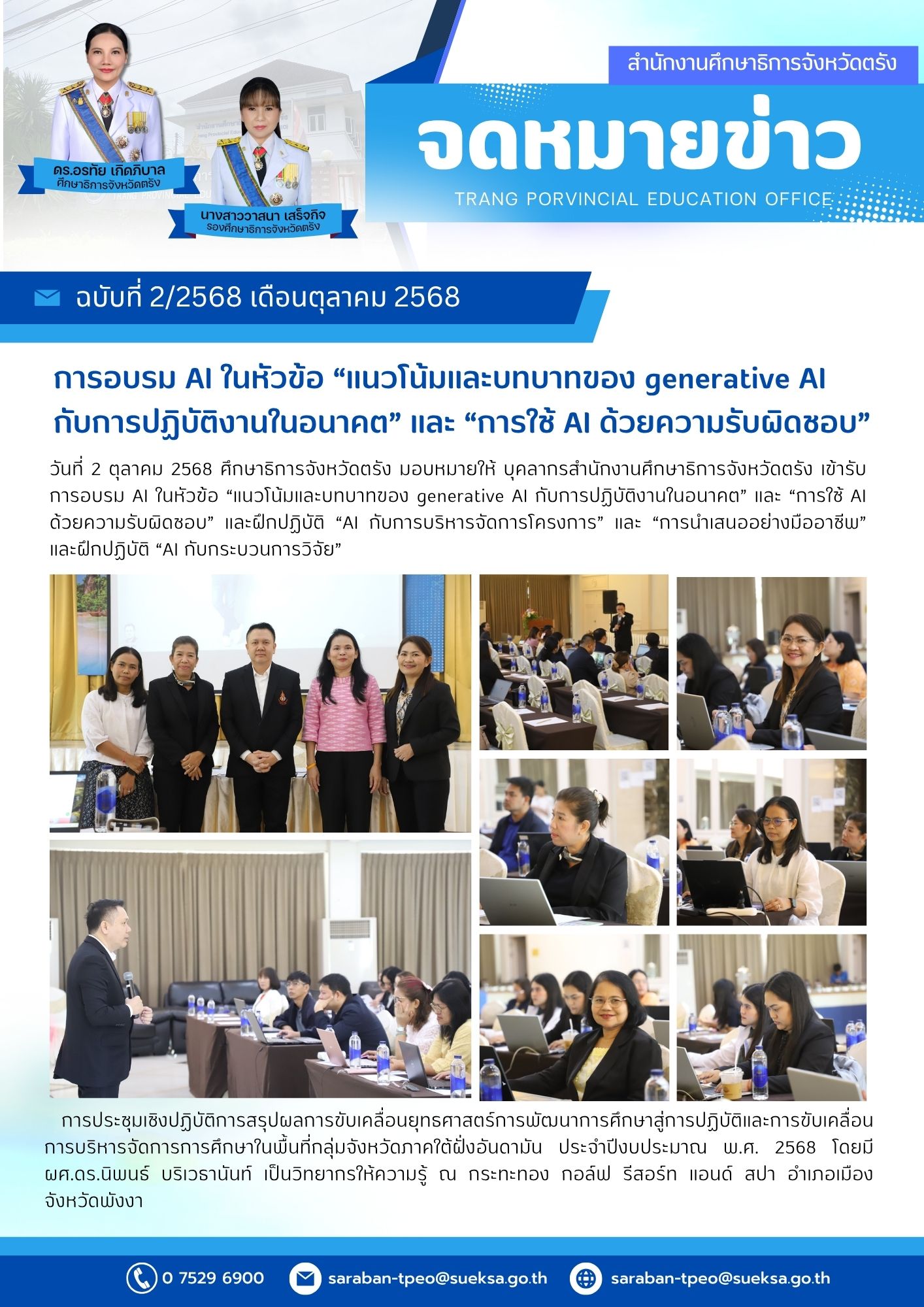 การอบรม AI ในหัวข้อ “แนวโน้มและบทบาทของ generative AIกับการปฏิบัติงานในอนาคต” และ “การใช้ AI ด้วยความรับผิดชอบ”