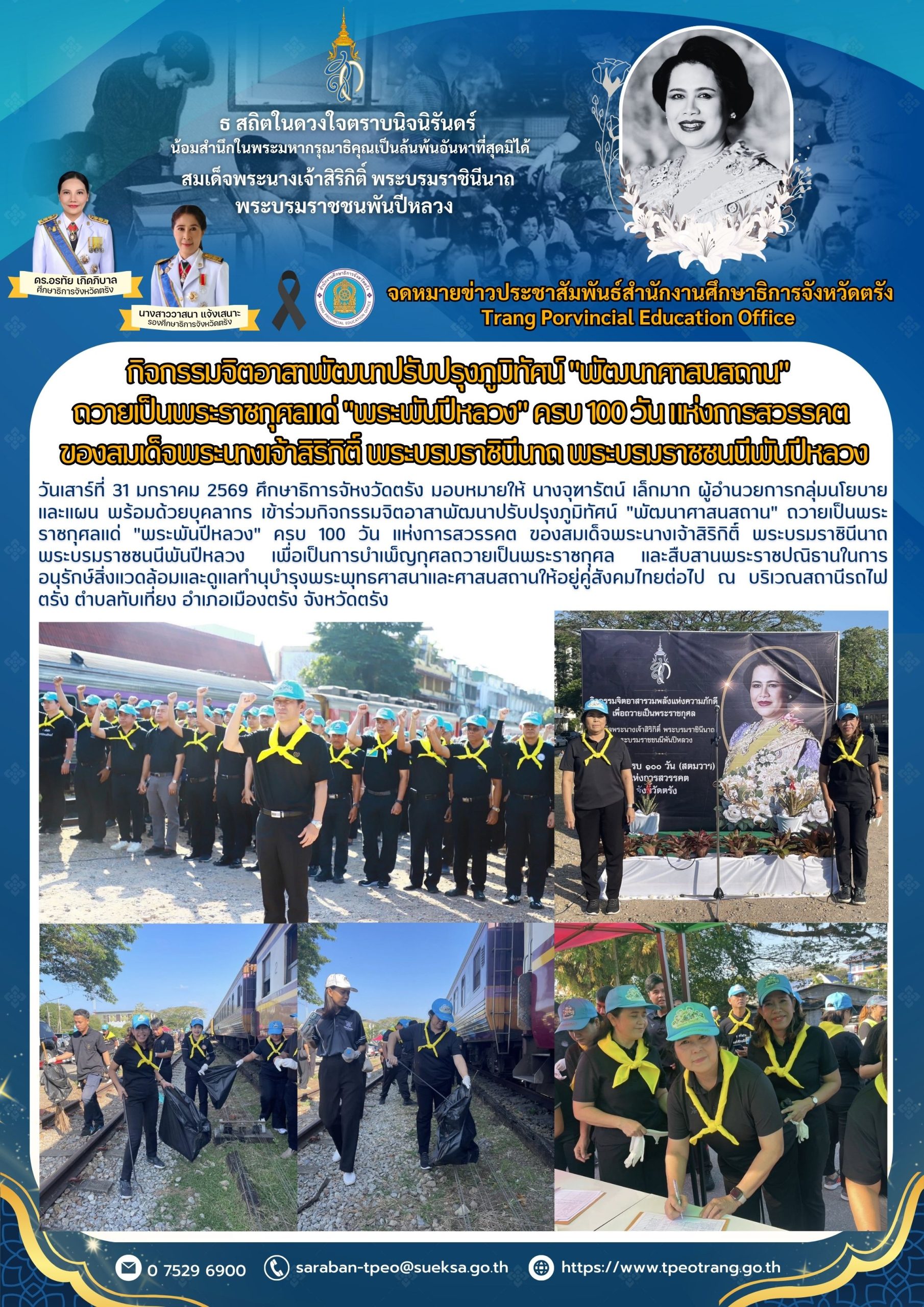 กิจกรรมจิตอาสาพัฒนาปรับปรุงภูมิทัศน์ “พัฒนาศาสนสถาน”ถวายเป็นพระราชกุศลแด่ “พระพันปีหลวง” ครบ 100 วัน แห่งการสวรรคตของสมเด็จพระนางเจ้าสิริกิติ์ พระบรมราชินีนาถ พระบรมราชชนนีพันปีหลวง