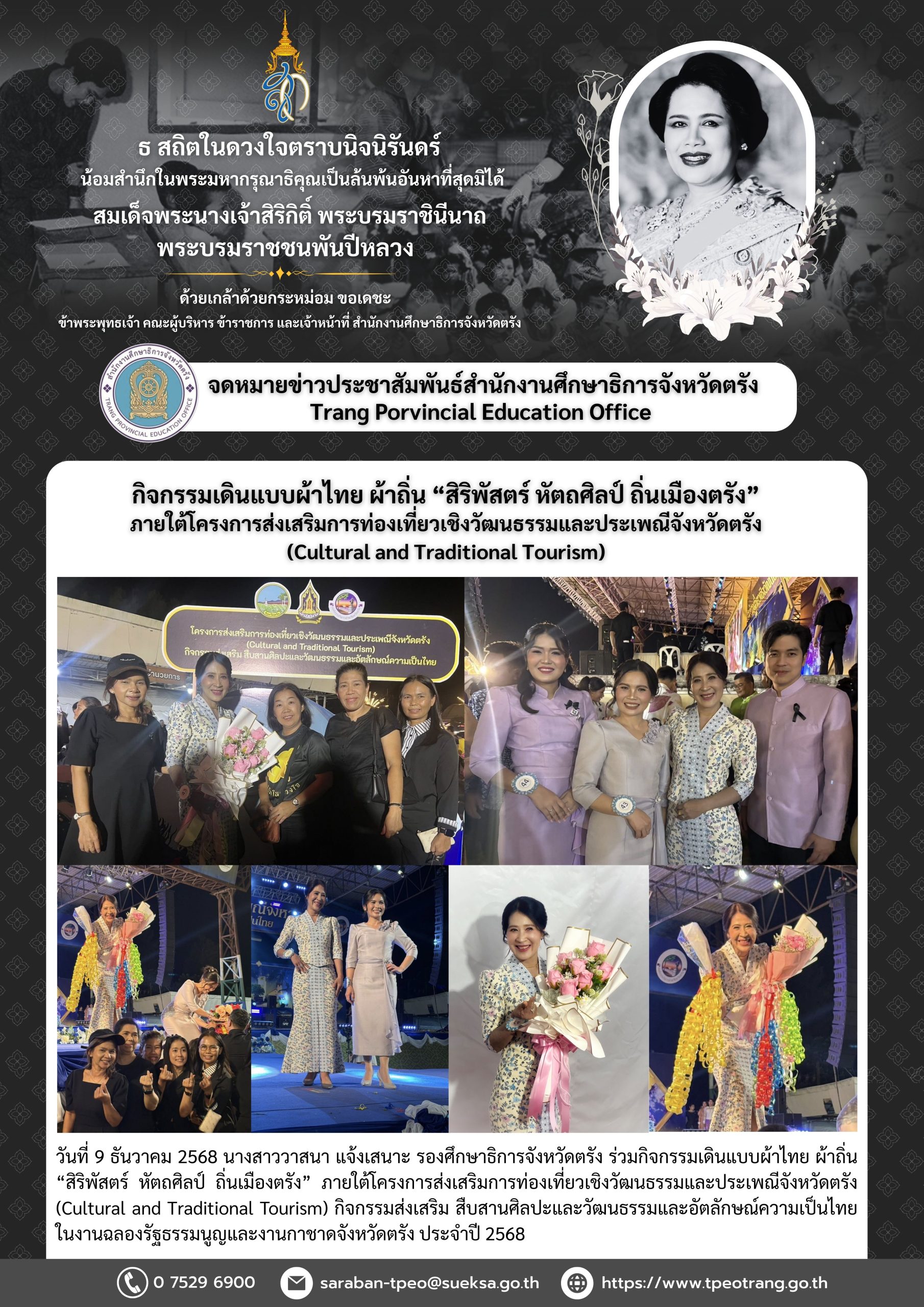 กิจกรรมเดินแบบผ้าไทย ผ้าถิ่น “สิริพัสตร์ หัตถศิลป์ ถิ่นเมืองตรัง”ภายใต้โครงการส่งเสริมการท่องเที่ยวเชิงวัฒนธรรมและประเพณีจังหวัดตรัง(Cultural and Traditional Tourism)