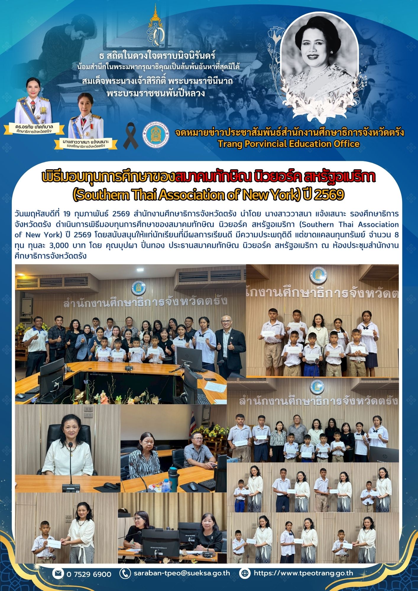 พิธีมอบทุนการศึกษาของสมาคมทักษิณ นิวยอร์ค สหรัฐอเมริกา (Southern Thai Association of New York) ปี 2569