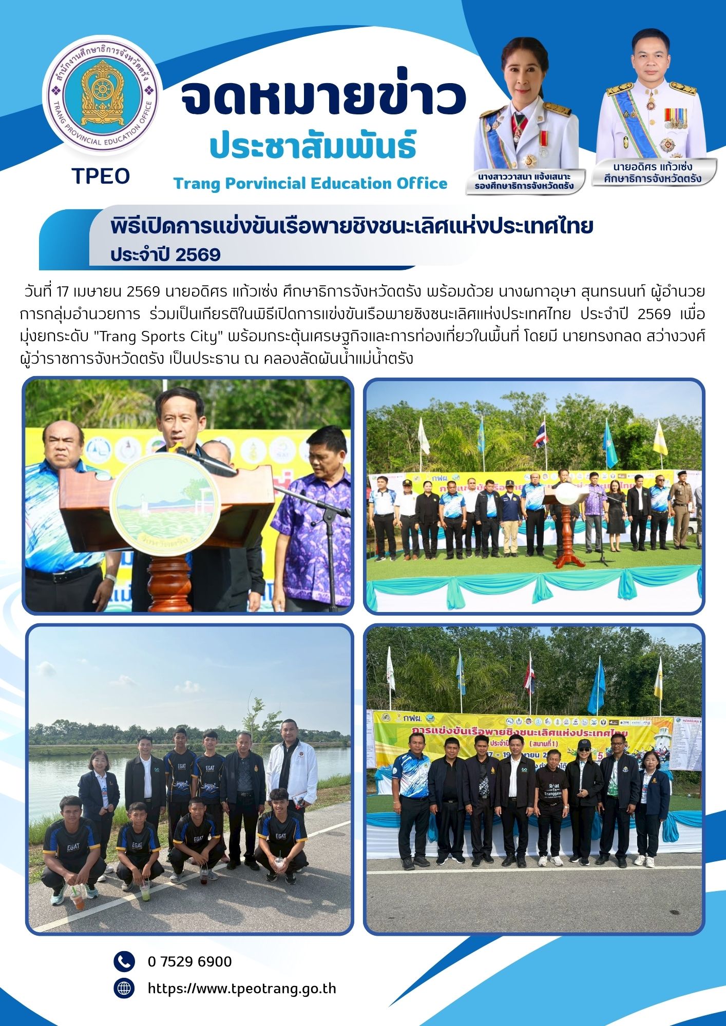 พิธีเปิดการแข่งขันเรือพายชิงชนะเลิศแห่งประเทศไทย ประจำปี 2569