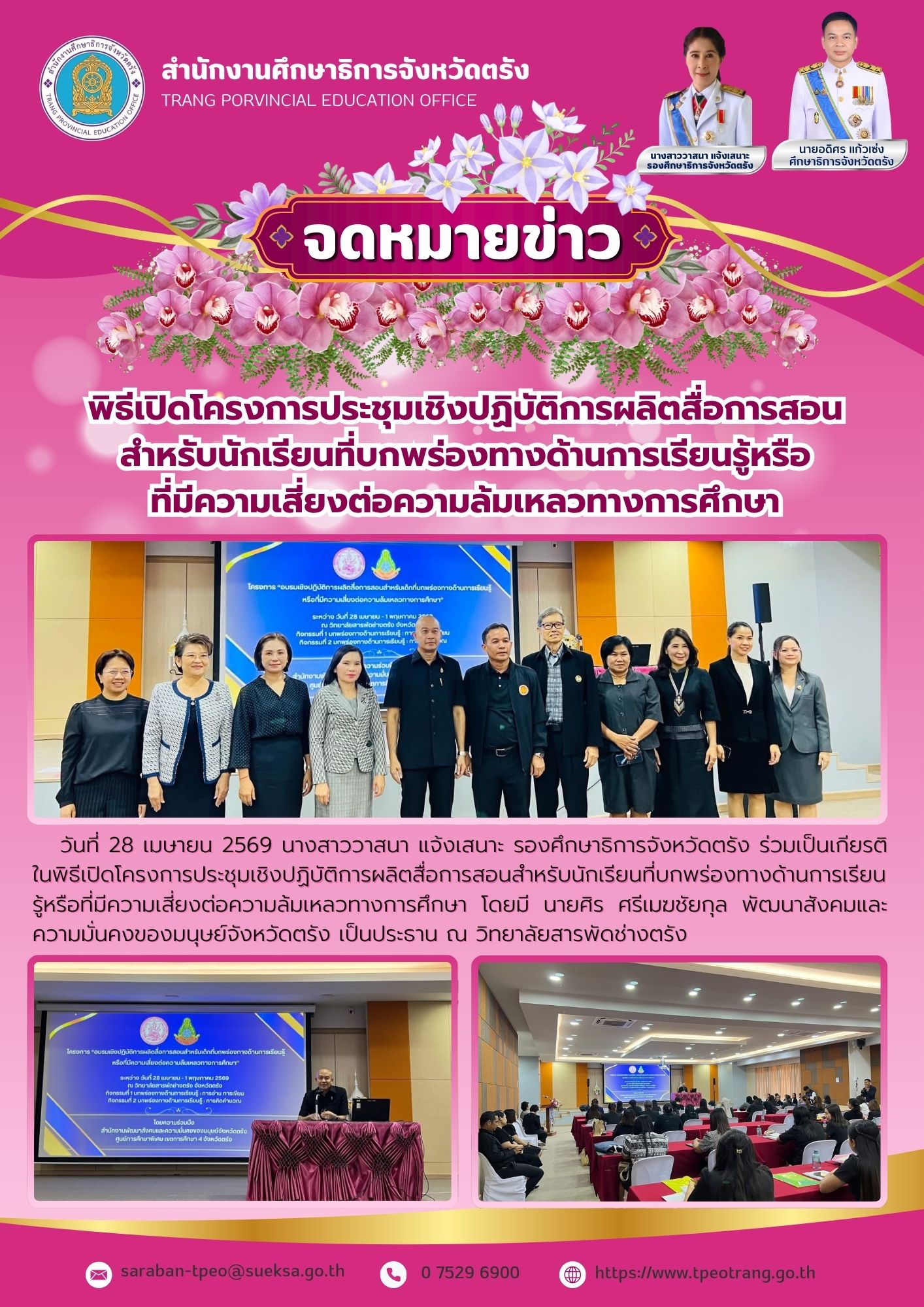 พิธีเปิดโครงการประชุมเชิงปฏิบัติการผลิตสื่อการสอนสำหรับนักเรียนที่บกพร่องทางด้านการเรียนรู้หรือที่มีความเสี่ยงต่อความล้มเหลวทางการศึกษา
