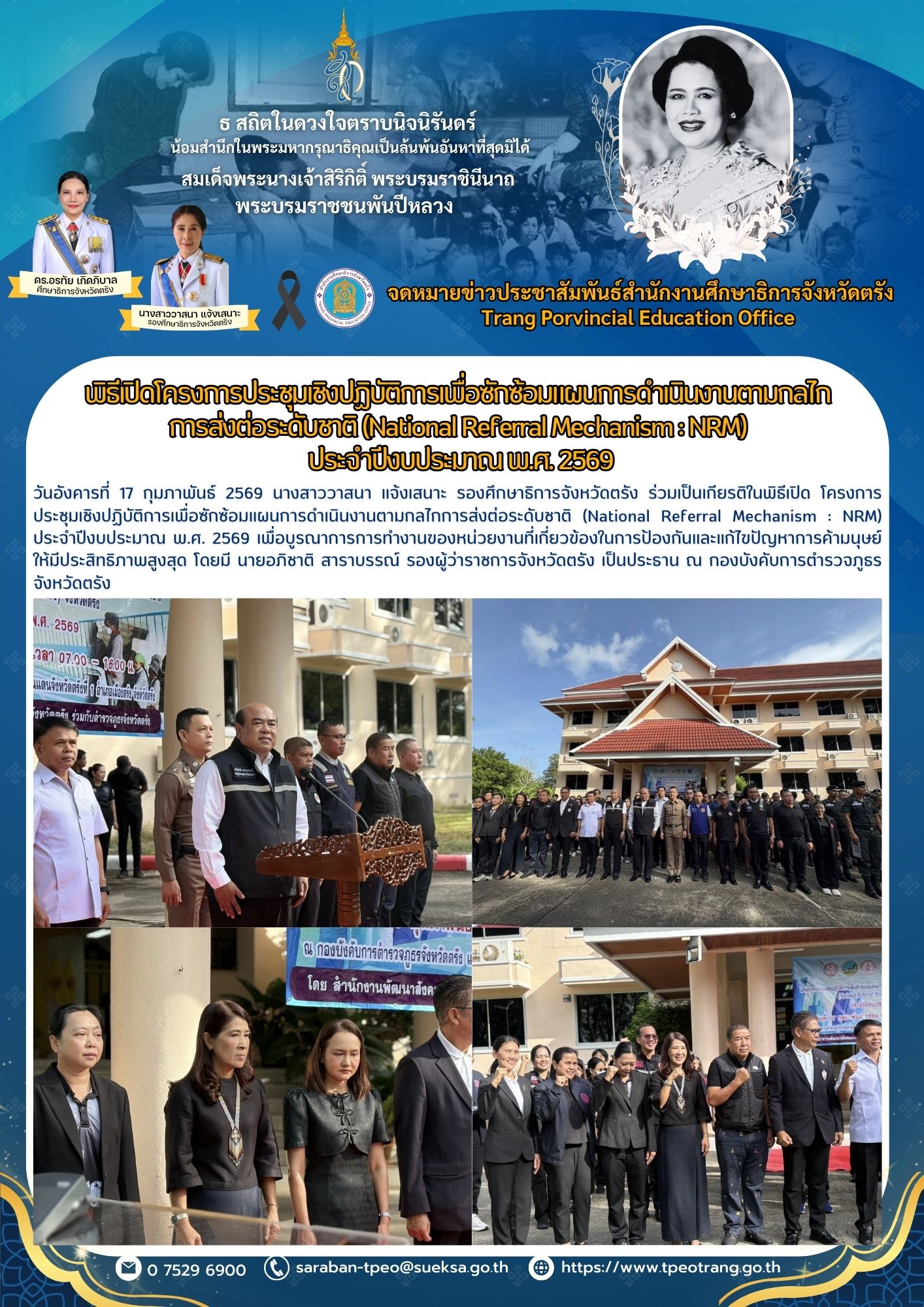 พิธีเปิดโครงการประชุมเชิงปฏิบัติการเพื่อซักซ้อมแผนการดำเนินงานตามกลไกการส่งต่อระดับชาติ (National Referral Mechanism : NRM)ประจำปีงบประมาณ พ.ศ. 2569