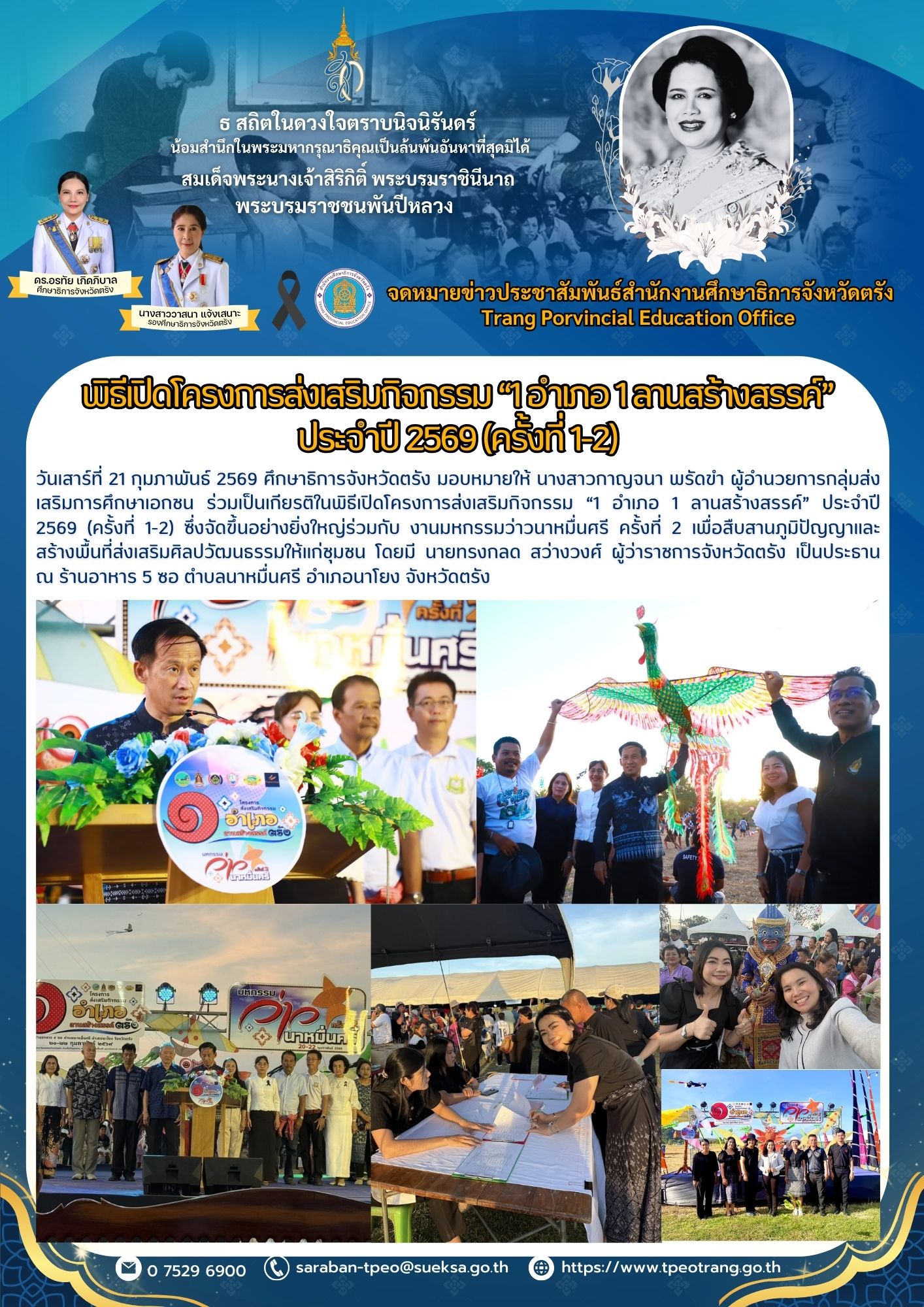 พิธีเปิดโครงการส่งเสริมกิจกรรม “1 อำเภอ 1 ลานสร้างสรรค์” ประจำปี 2569 (ครั้งที่ 1-2)