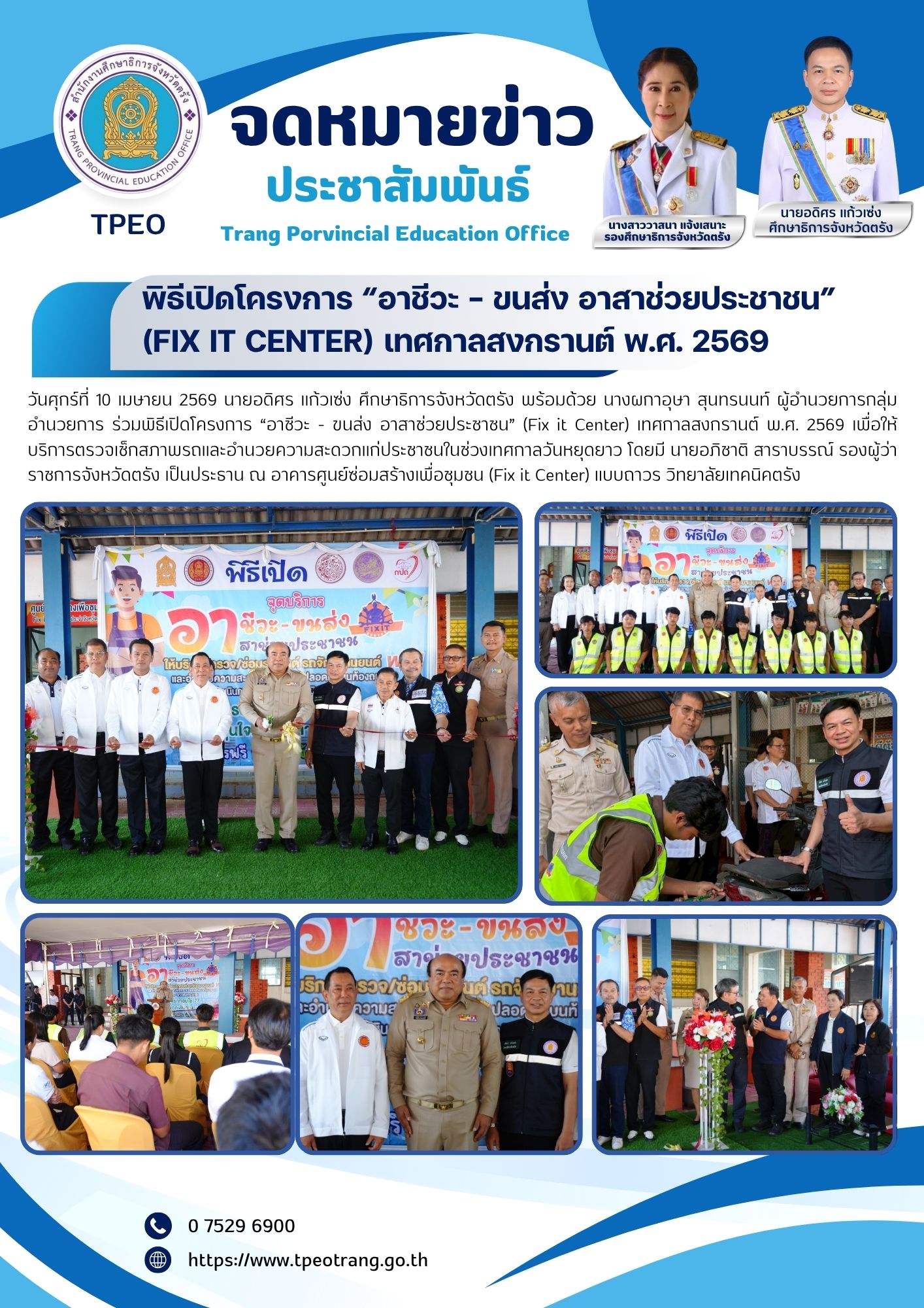 พิธีเปิดโครงการ “อาชีวะ – ขนส่ง อาสาช่วยประชาชน”(Fix it Center) เทศกาลสงกรานต์ พ.ศ. 2569