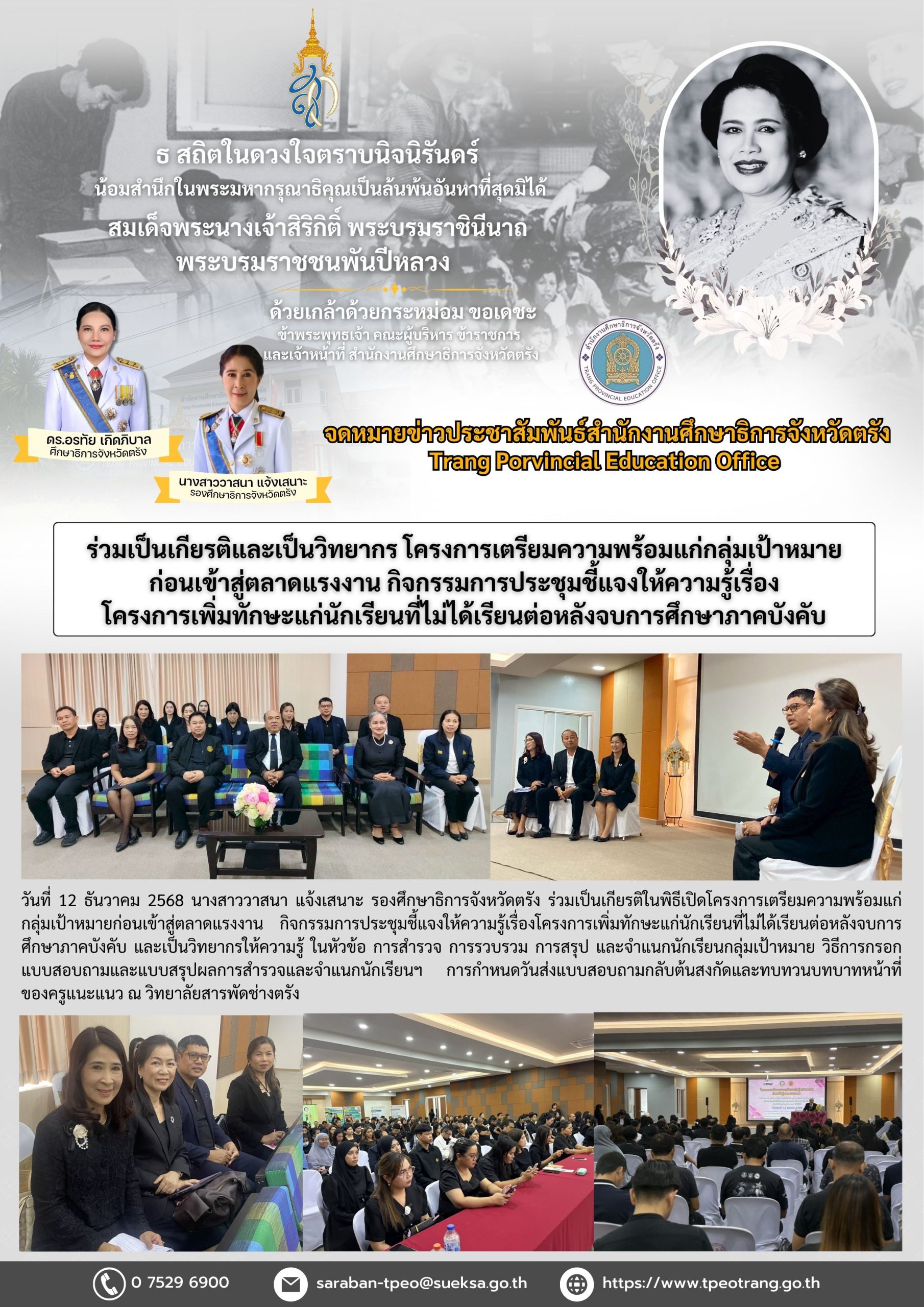 ร่วมเป็นเกียรติและเป็นวิทยากร โครงการเตรียมความพร้อมแก่กลุ่มเป้าหมายก่อนเข้าสู่ตลาดแรงงาน กิจกรรมการประชุมชี้แจงให้ความรู้เรื่องโครงการเพิ่มทักษะแก่นักเรียนที่ไม่ได้เรียนต่อหลังจบการศึกษาภาคบังคับ