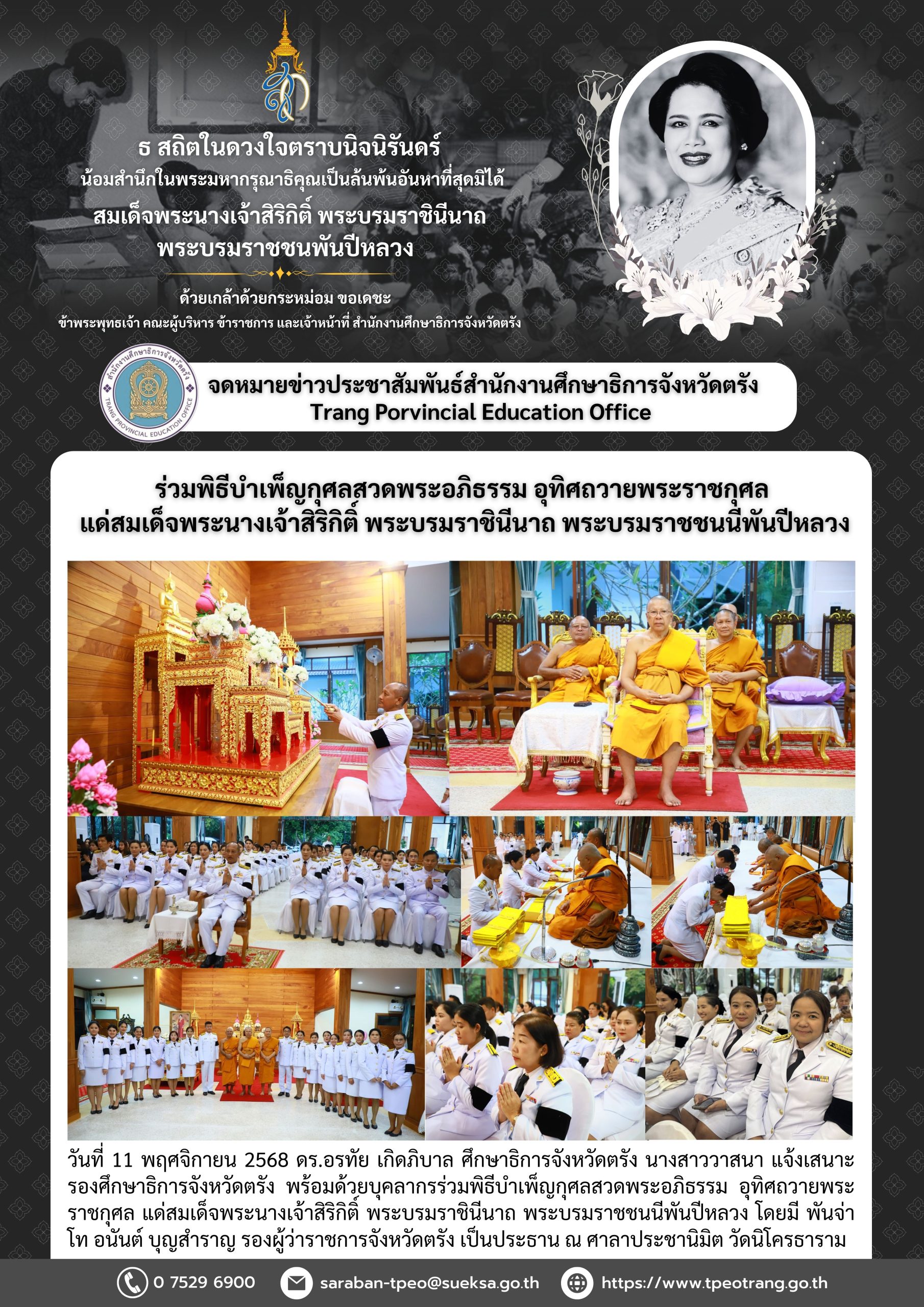 ศธจ.ตรัง ร่วมพิธีบำเพ็ญกุศลสวดพระอภิธรรม อุทิศถวายพระราชกุศลแด่สมเด็จพระนางเจ้าสิริกิติ์ พระบรมราชินีนาถ พระบรมราชชนนีพันปีหลวง