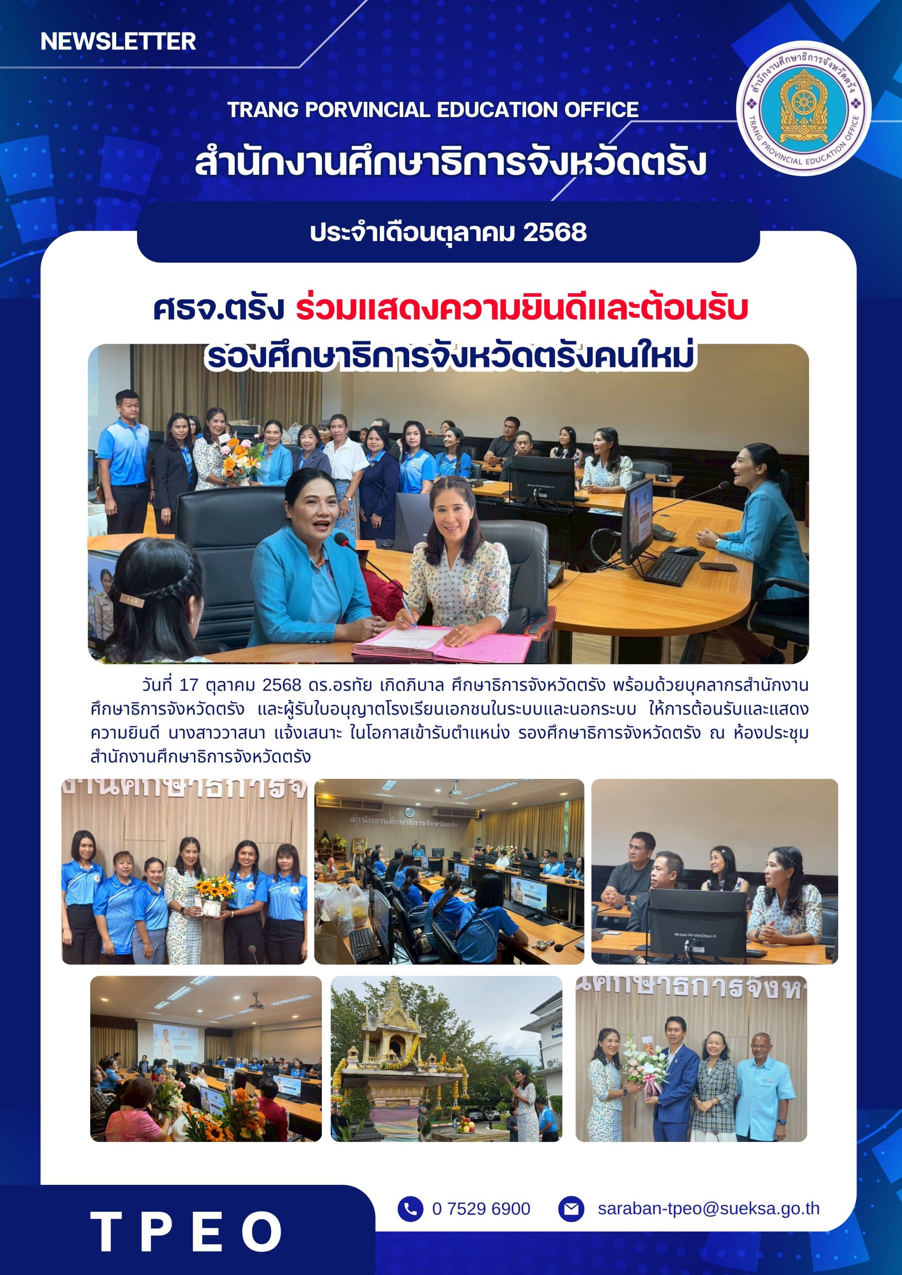 ศธจ.ตรัง ร่วมแสดงความยินดีและต้อนรับรองศึกษาธิการจังหวัดตรังคนใหม่