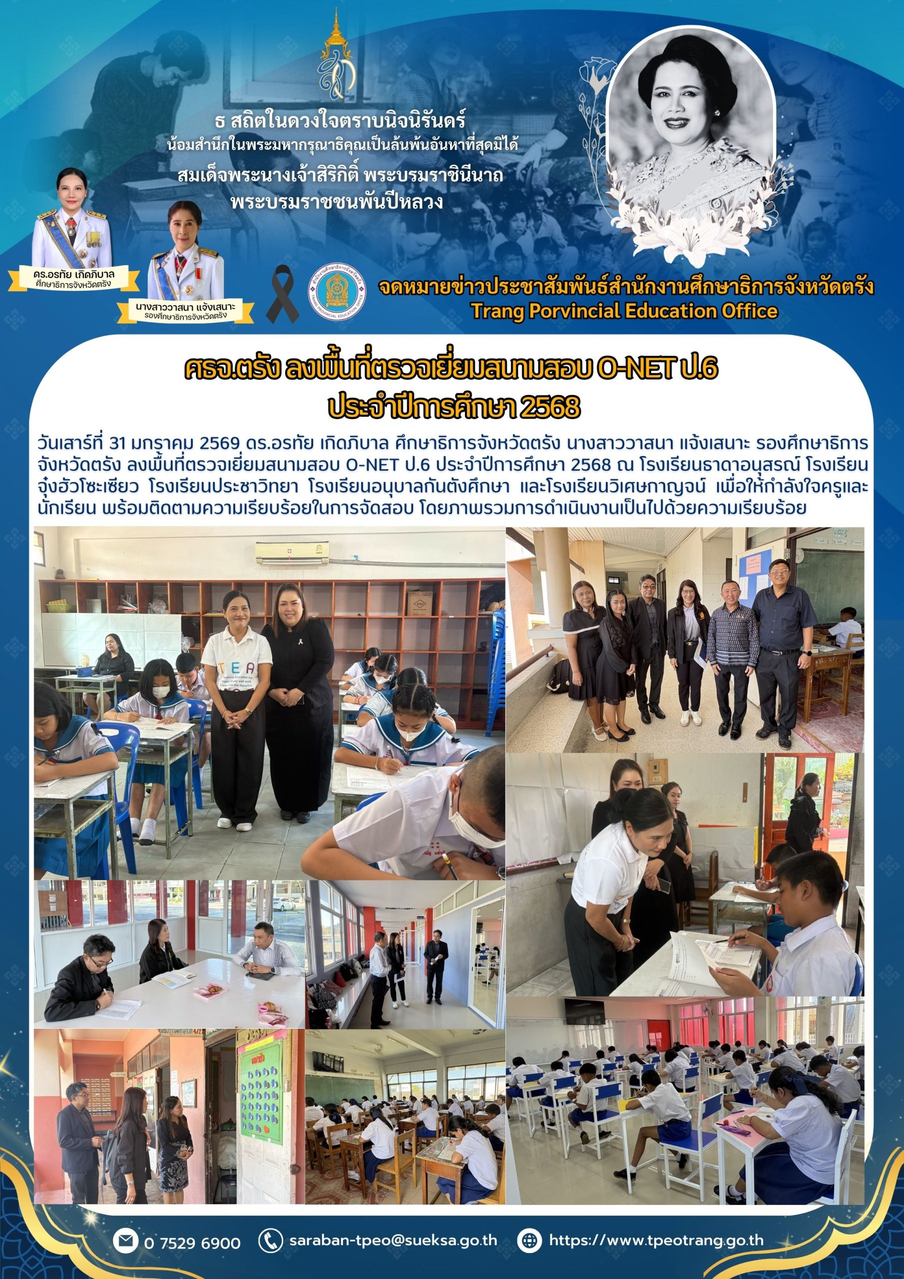 ศธจ.ตรัง ลงพื้นที่ตรวจเยี่ยมสนามสอบ O-NET ป.6ประจำปีการศึกษา 2568