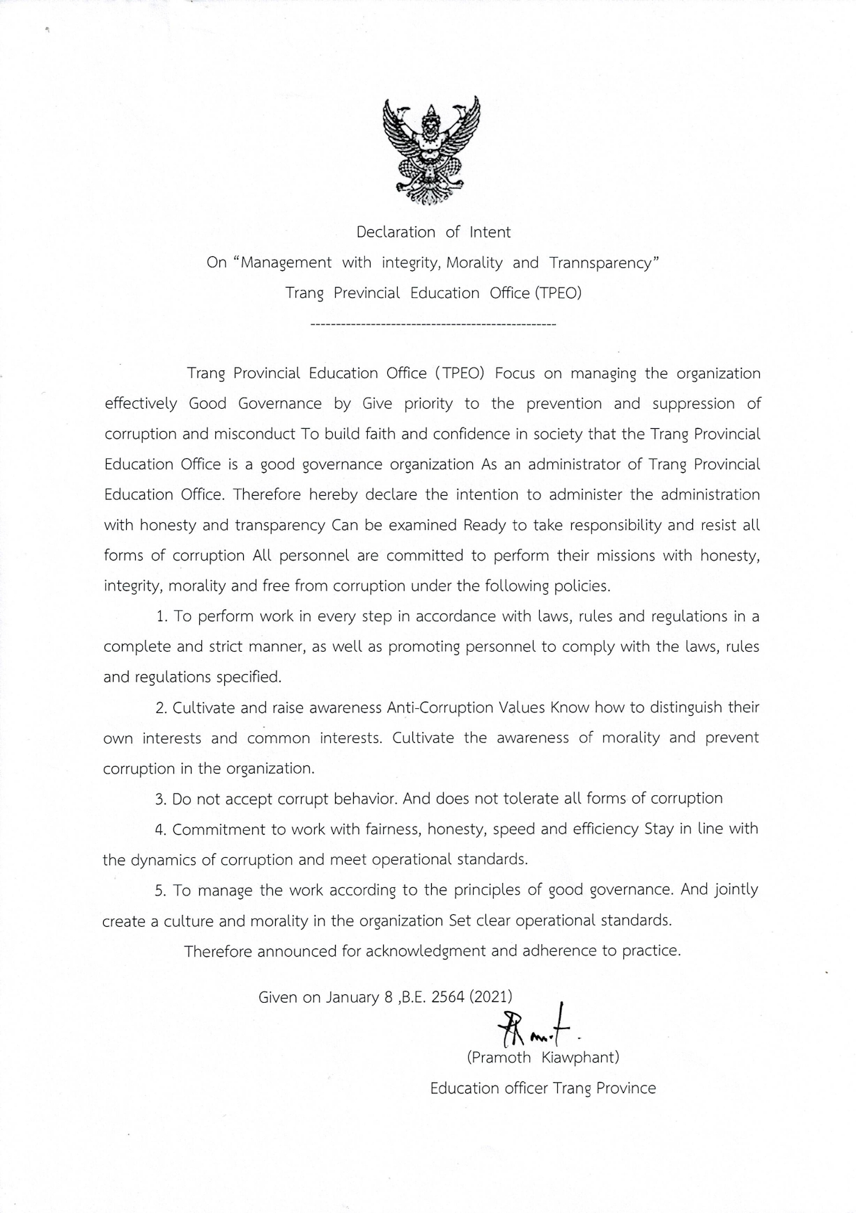 o30 เจตจำนงสุจริตของผู้บริหาร