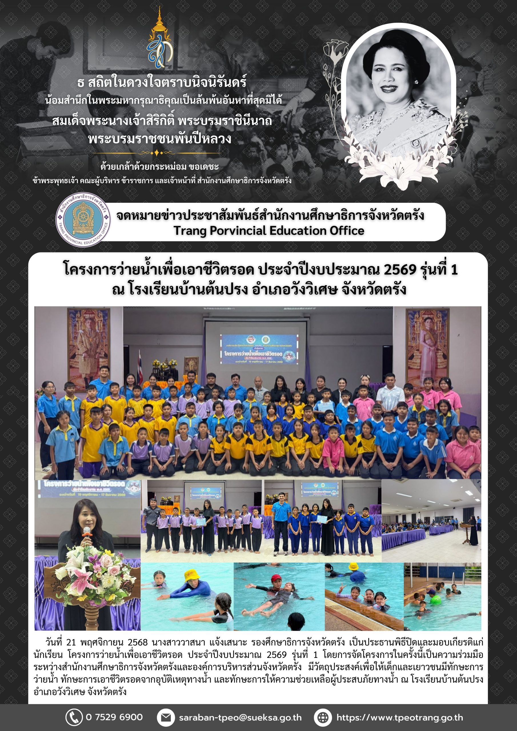 โครงการว่ายน้ำเพื่อเอาชีวิตรอด ประจำปีงบประมาณ 2569 รุ่นที่ 1ณ โรงเรียนบ้านต้นปรง อำเภอวังวิเศษ จังหวัดตรัง