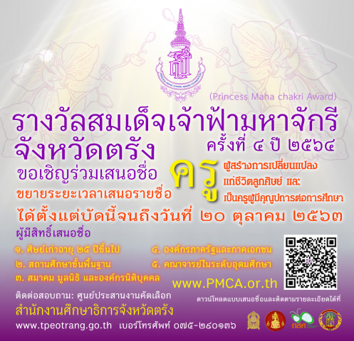 ประกาศมูลนิธิรางวัลสมเด็จเจ้าฟ้ามหาจักรี ครั้งที่ 4 ปี 2564