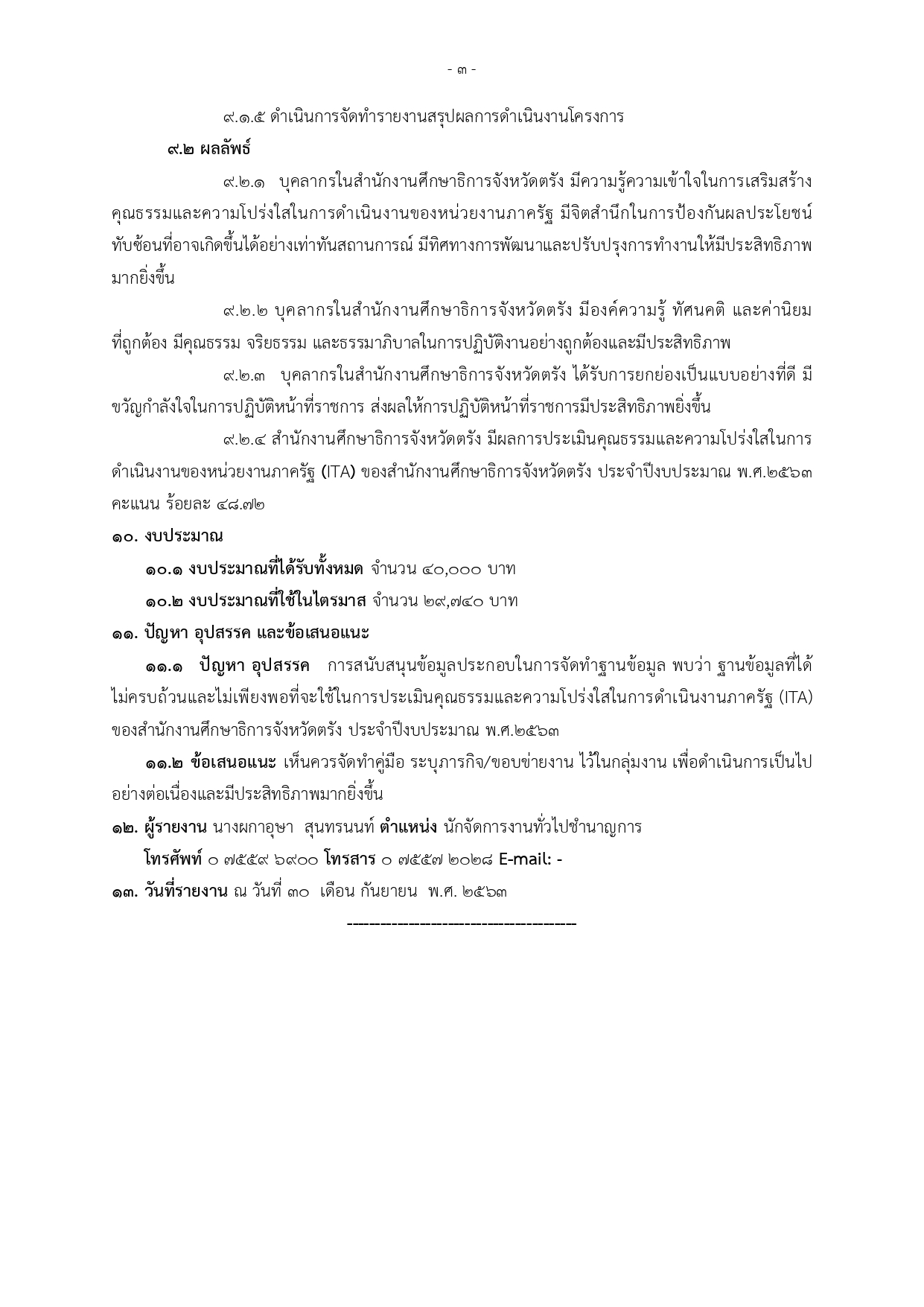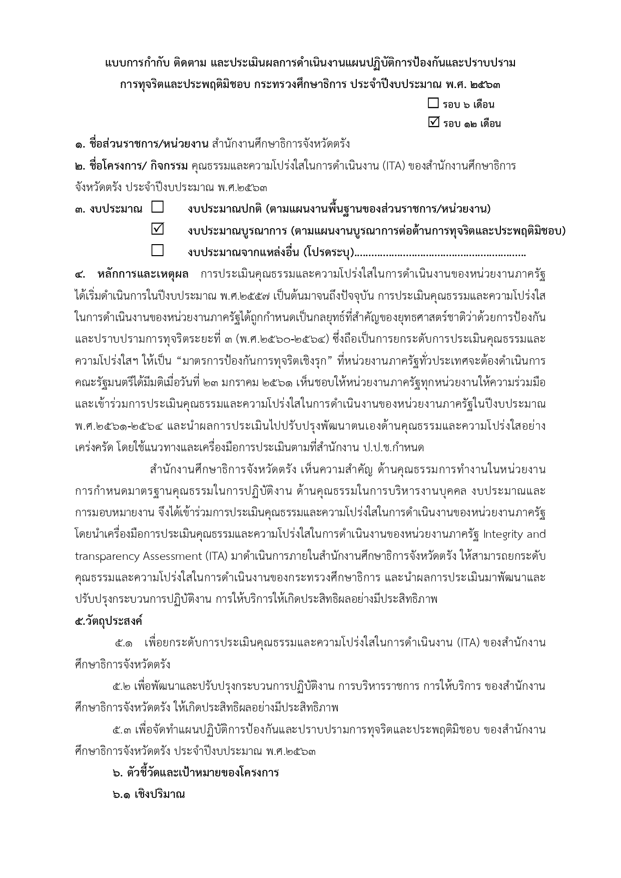 O37 รายงานผลการดำเนินการป้องกันการทุจริตประจำปี